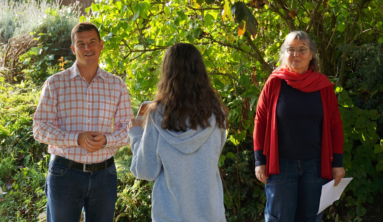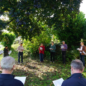 Wir begannen vor der Hl. Geist-Kapelle bei Fehring mit einer Schöpfungs-Andacht zusammen mit Pfarrer Christoph Wiesler.