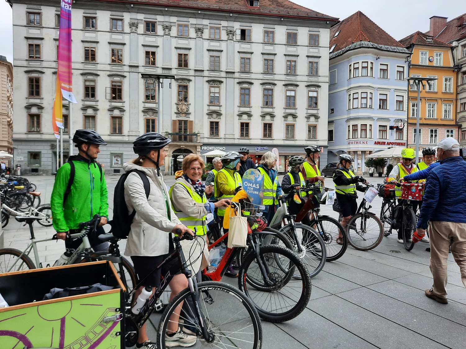 Am 14. Mai brach eine Gruppe von Omas und Opas for Future mit dem Rad von Leibnitz Richtung Wien auf, wo die Aktion einige Tage später am Platz der Menschenrechte ihren Höhepunkt fand.