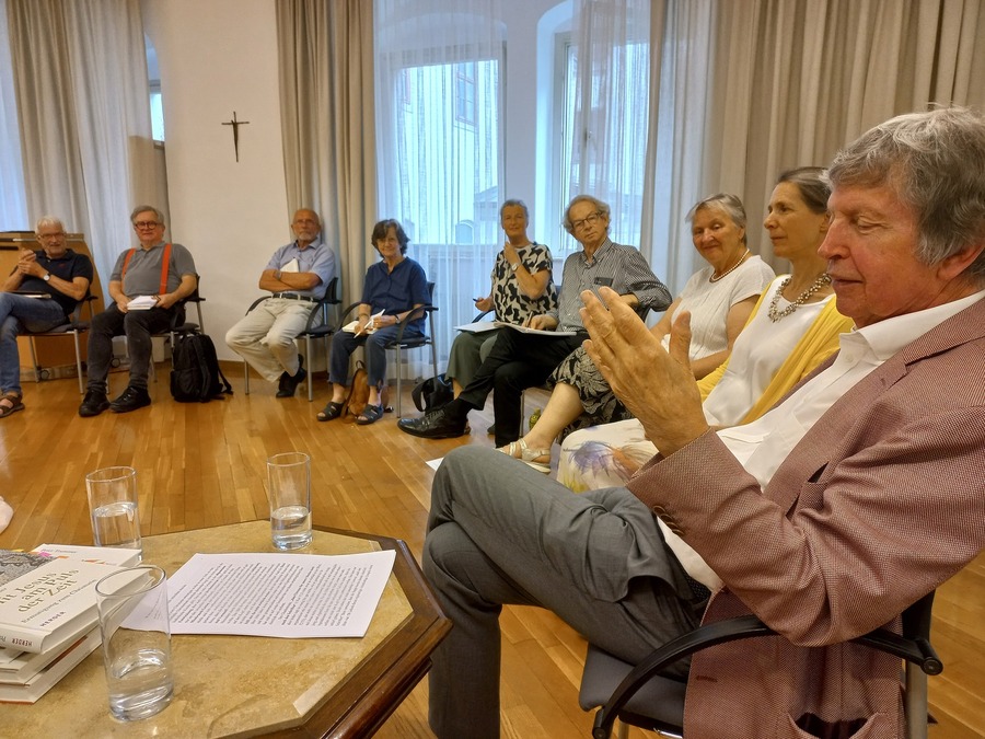 Austausch und Gespräch waren Peter Trummer im Seminar besonders wichtig, gerne ging er auf Rückfragen und Anmerkungen der Teilnehmenden ein. Große Lust hat er ihnen auf die persönliche Auseinandersetzung mit den im Buch enthaltenen (und zum Teil bereits in CHRIST IN DER GEGENWART erschienen) 16 Essays, die auch „kreuz und quer gelesen werden können“, gemacht – wie der komplett geleerte Büchertisch bewies!