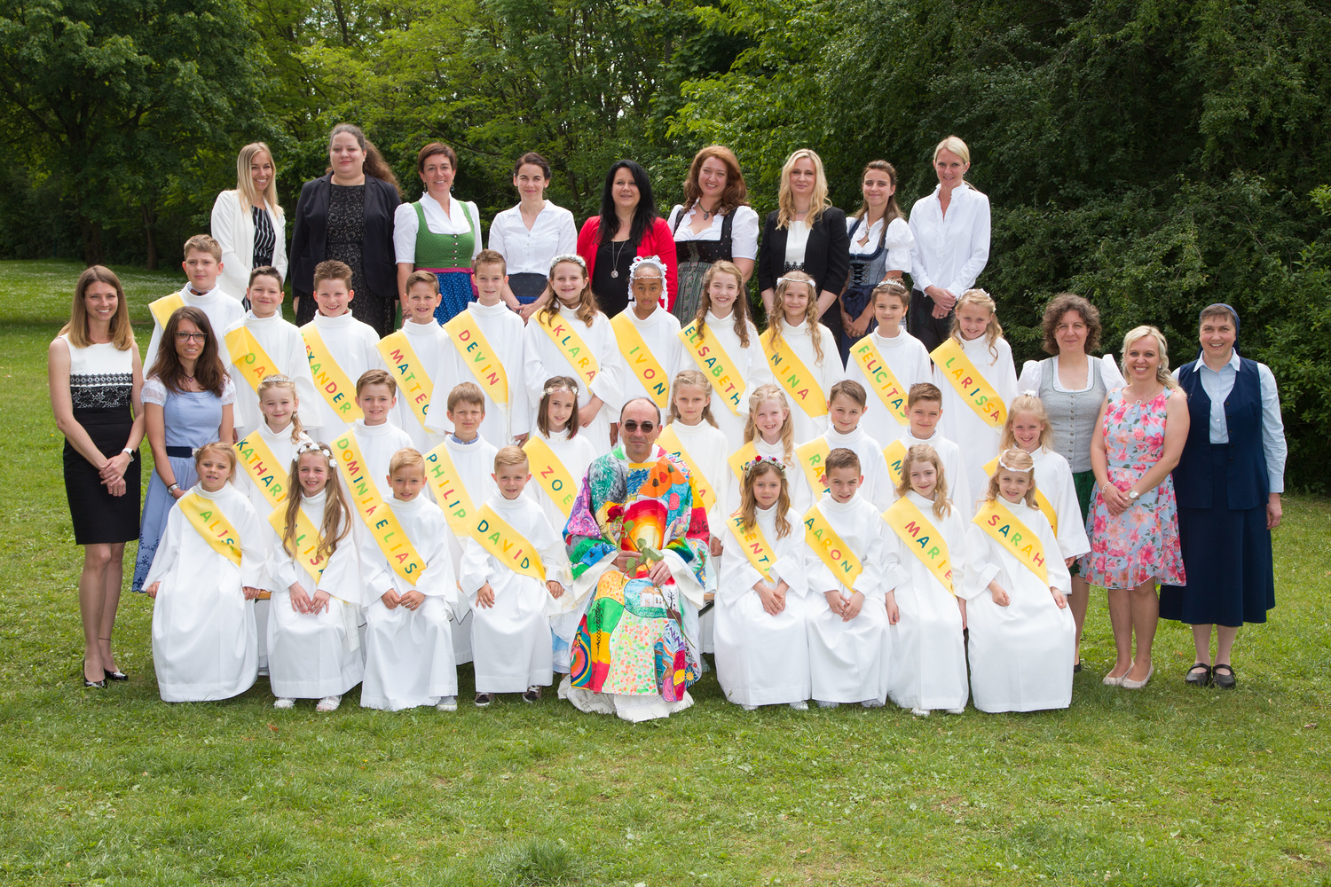 28 Kinder empfingen am 26. Mai von Pfarrer Johann Karner das erste Mal das Sakrament der Eucharistie.