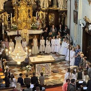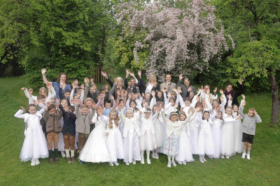 Am Fest Christi Himmelfahrt durften 42 Kinder unserer Pfarre das ganz besonderes Ereignis ihrer Erstkommunion feiern. Unter dem Motto „Hand in Hand mit Jesus um den Tisch versammelt“ empfingen die Kinder zum ersten Mal das Sakrament der Eucharistie.