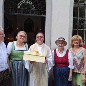 Der Pfarrgemeinderat überraschte Ihn zu seinem 30 jährigen Priesterjubiläum. Die Adriacher Sängerrunde gestaltete die Messe feierlich mit - und als Höhepunkt wurde "Die Ode an die Freude" angestimmt. Der Pfarrgemeinderat überreichte Herrn Pfarrer Ruthofer zu diesem Anlass eine Albe und einen Ledereinband für das Brevier. Pfarrer Ruthofer zeigte sich tief bewegt und sichtlich überrascht.