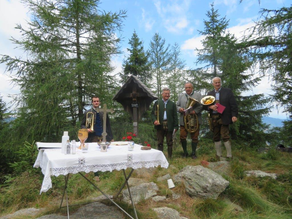 Am 13. Juli jährte sich zum 20sten Mal der Tag seitdem Herr Josef Affenberger und Herr Walter Kögler das neue Gipfelkreuz am Fuchskogel errichteten. Auch vorher gab es ein Gipfelkreuz, das von Herrn Friedl Rappold vulgo Rebinger und Herrn Johann Schrottner vulgo Kogler in den 60gerJahren renoviert wurde und inzwischen verfallen war. Zum 20sten Jahrestag(am Sonntag, dem 16. Juli) feierte Pfarrer P. Simon mit zirka 70 Leuten die hl. Messe, die ein Bläserquartett unter der Leitung von Prof. Markus Weidacher musikalisch umrahmte. Das prachtvolle Wetter machte mit, so dass die Messebesucher noch lange beisammen blieben an ihrem beliebten Fuchskogel.