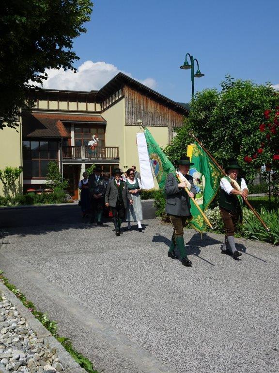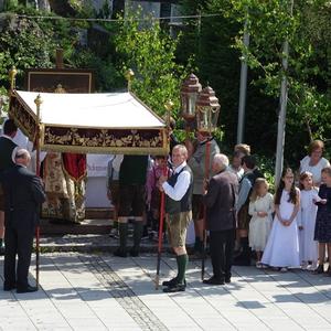Die Prozession, an der einige Erstkommunionkinder und etliche örtliche Vereine, wie Musikverein, Landjugend, Kameradschaftsbund, Oberlandler, Hocholma teilgenommen haben, endete dann mit einen Segen und dem "Großer Gott wir loben Dich" in der Pfarrkirche.