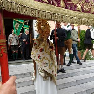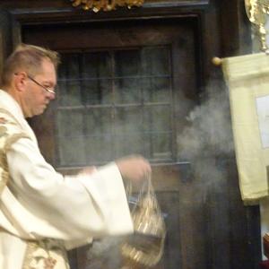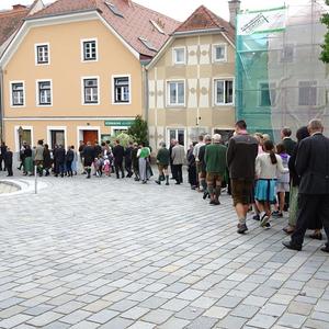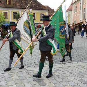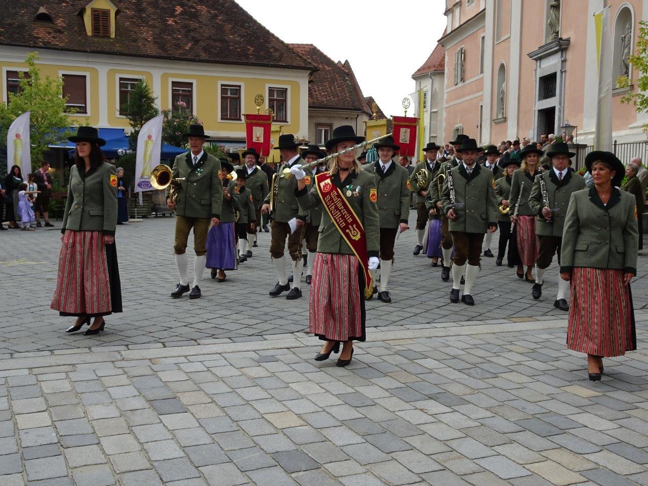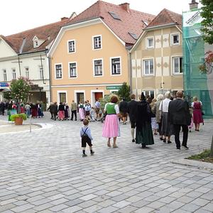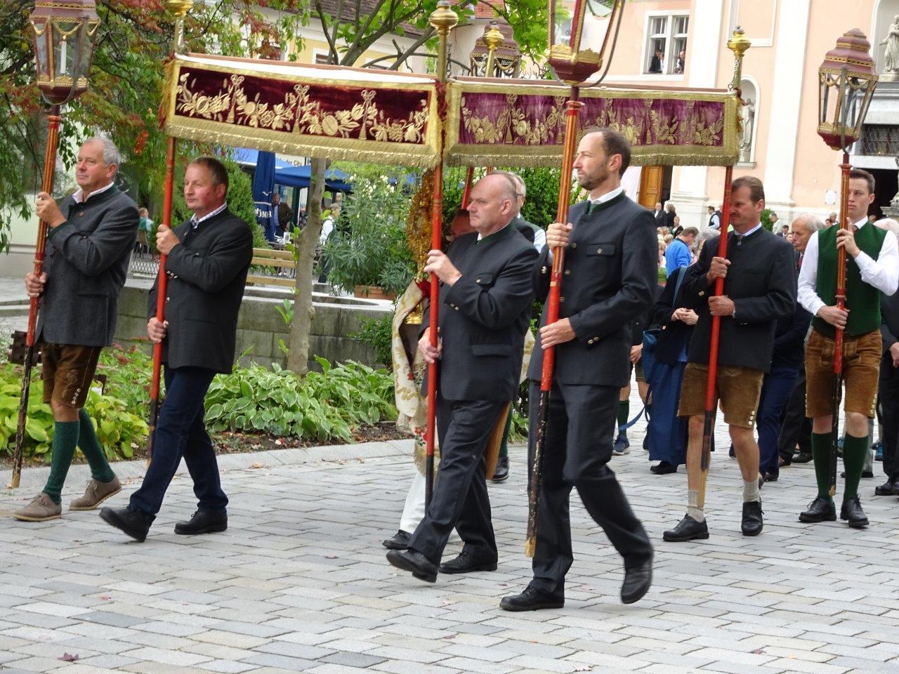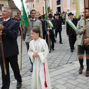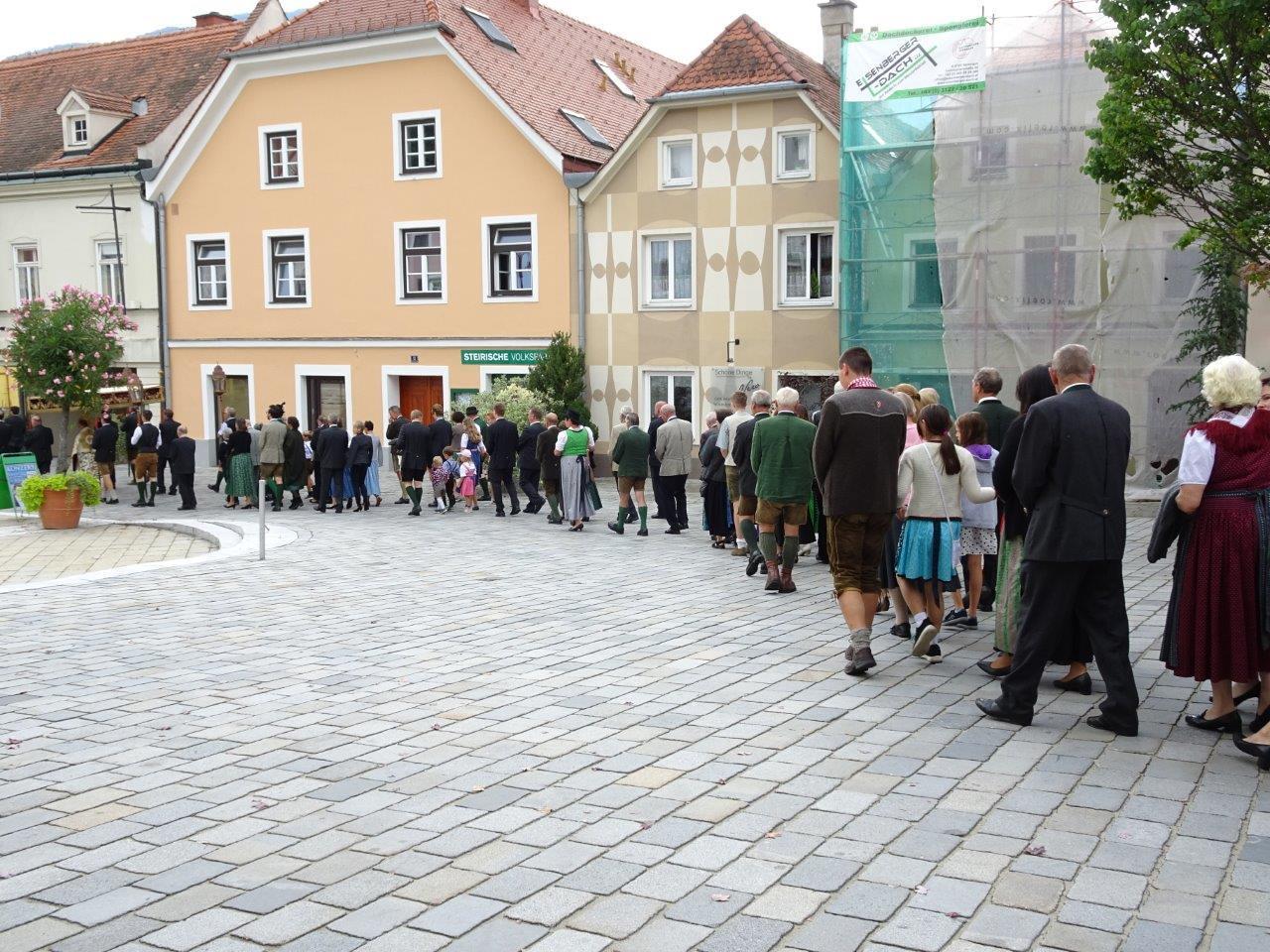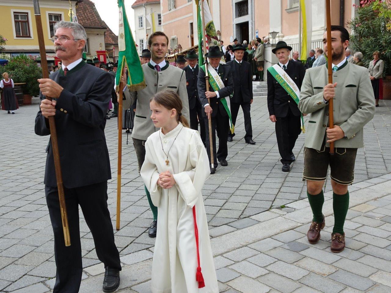 Nach der Segnung der Erntegaben folgte die Erntedankprozession mit Beteiligung der örtlichen Vereine und des Musikvereines Röthelstein sowie unter reger Teilnahme der Gläubigen über den gesamten Hauptplatz. Anschließend wurde dann der feierliche Lobgesang "Te Deum" gesungen. In der Pfarrkirche waren nach altem Brauchtum drei Erntekronen vorhanden, und zwar eine von den Bäuerinnen unter Anleitung von Anni Plienegger, eine von der Landjugend und eine vom Heimatverein Hocholma hergestellt.