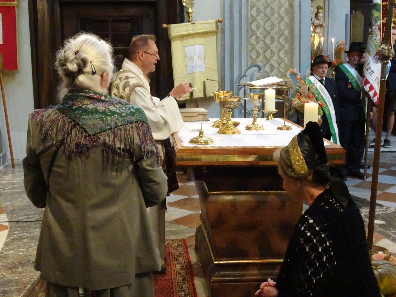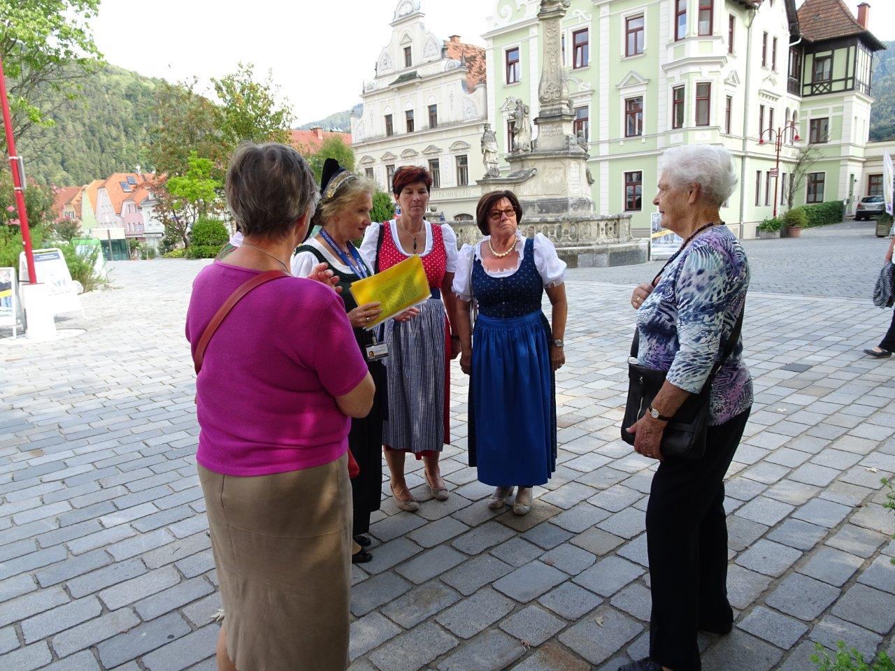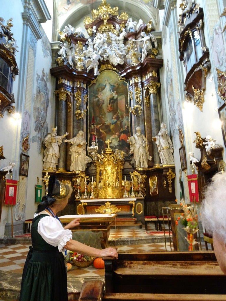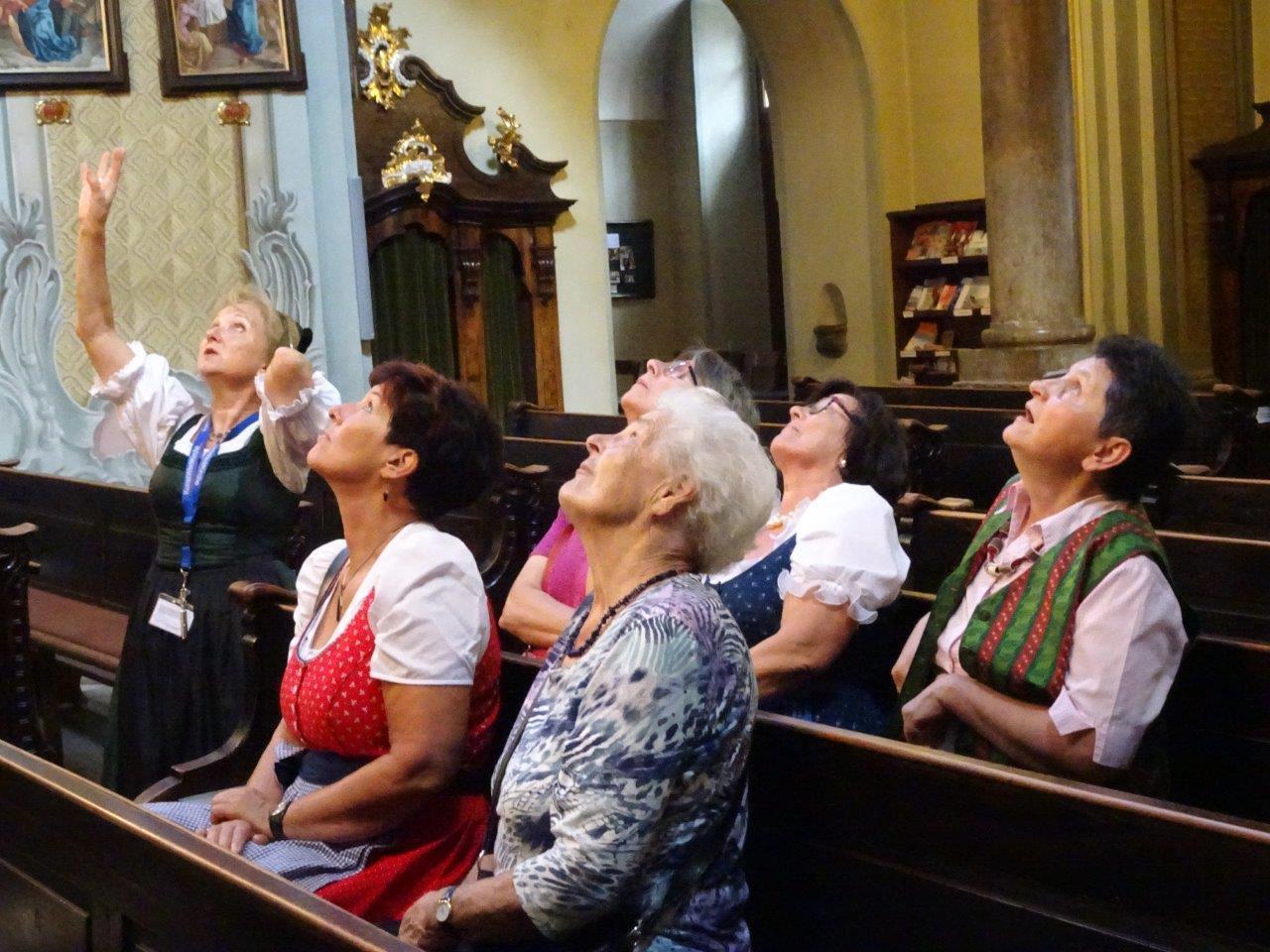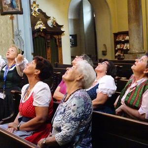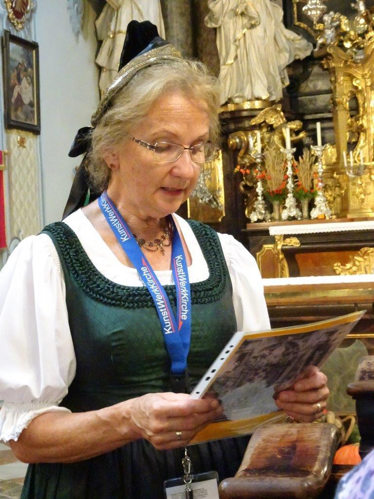 Um 15 Uhr absolvierte Dr. Marlene Reiter mit einer kleinen Gruppe eine sehr interessante Kirchenführung beginnend bei der Mariensäule.