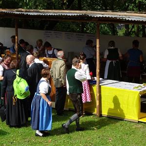 Um 11 Uhr begann bei traumhaftem Wetter das Pfarrfest im schönen Klostergarten, wobei für köstliche Speisen und gekühlte Getränke gesorgt wurde.