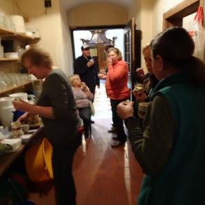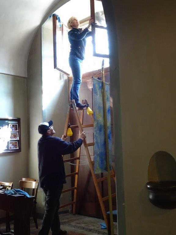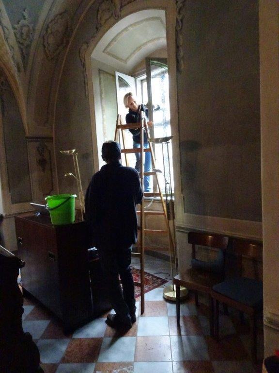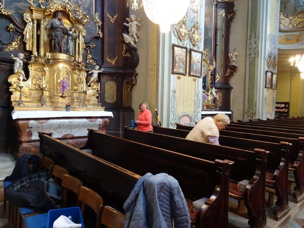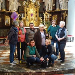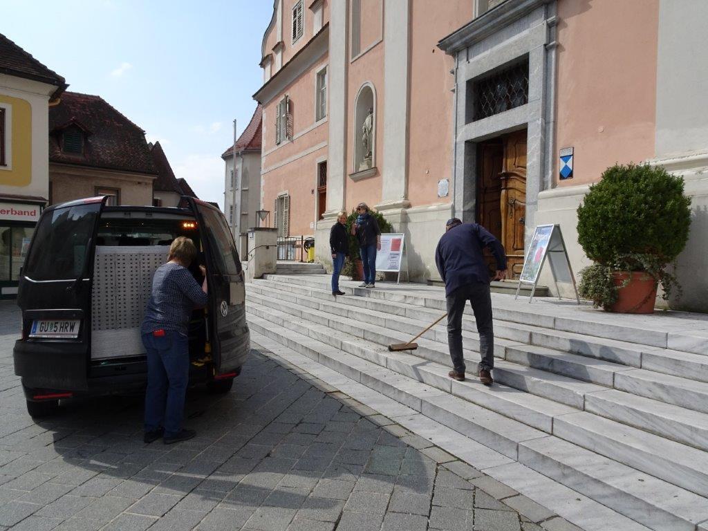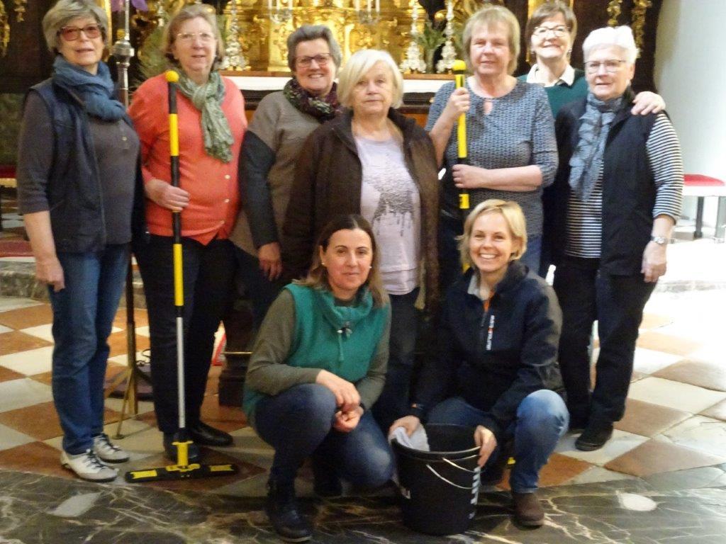 Um 8 Uhr früh kam ein Bus der Firma Eibisberger GmbH, beladen mit zwei Hochdruckstaubsaugern, vielen Putzlappen und Kübeln, am Kirchplatz vorgefahren, um unsere Pfarrkirche wiederum auf Hochglanz zu bringen. Die Seniorchefin Heidi Eibisberger organisierte acht fröhliche Frauen und zwei männliche Wasserträger um dies zu bewerkstelligen. Es wurde nicht nur der Innenraum der Pfarrkirche gereinigt, sondern auch alle Altäre und Stühle, die Siebenväterkapelle, der Kreuzgang, alle Stiegen und Fenstern, der Eingang und die äußeren Stufen.