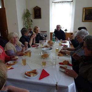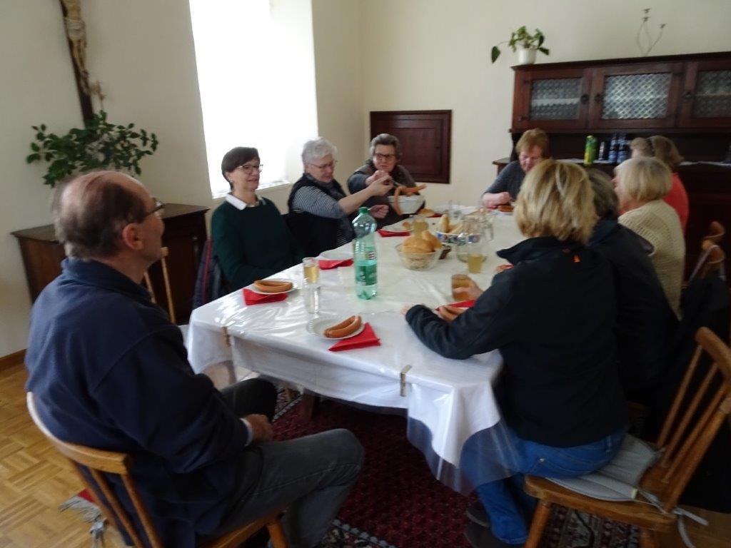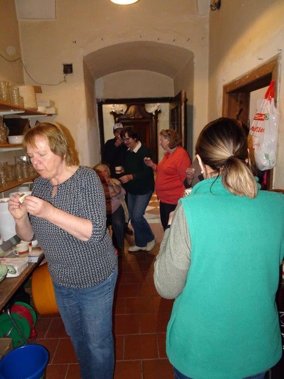 Die Pfarrhaushälterin Carmen kredenzte zwischenzeitlich eine gesunde Jause auf und servierte nach Abschluss der Arbeiten um 11 Uhr ein geschmackiges Essen.
