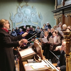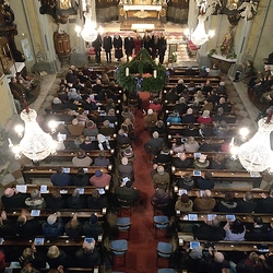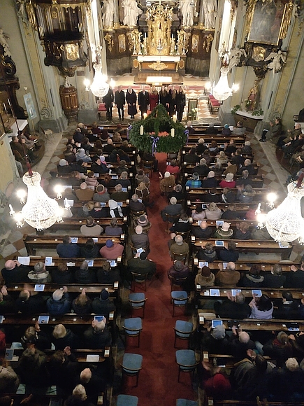 Als Hauptwerk des Adventkonzerts stand das stimmungsvolle Weihnachtsoratorium von Camille Saint-Saens am Programm, das wegen seiner besonderen Besetzung auf der Orgelempore musiziert wurde: Fünf Solisten und der Chor tragen darin die Weihnachtsgeschichte in lateinischer Sprache vor, begleitet von der großen Orgel, einer Harfe und Streichorchester. Zur besinnlichen Einstimmung auf die Adventzeit sang der Chor davor am Hochaltar A-Cappella-Motetten von Johannes Brahms, Benjamin Britten und Morten Lauridsen.