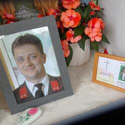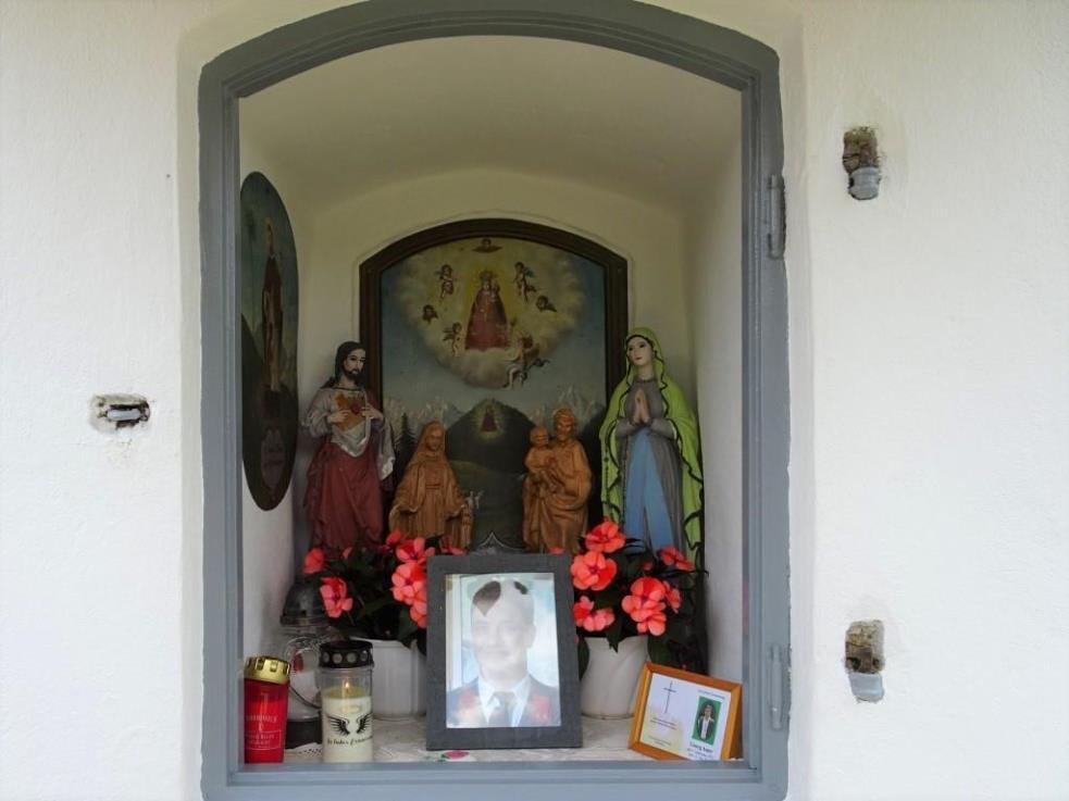 Am 21. Mai 2023 war auch der 8. Todestag des allzu früh im Alter von 42 Jahren verstorbenen Sohnes Georg Auer. Zur liebevollen Erinnerung wurde ein schönes Bild von ihm und ein Trauerandenken ins Zentrum der Mauernische gestellt.
