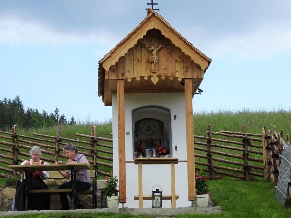 Neben dem Kleindenkmal wurde die vorhandene alte Holzbank durch eine gemütliche Bank ersetzt und ein kompakter Tisch dazugestellt. Dieser Kraftplatz ladet zum Rasten, zum Innehalten und zur Besinnung ein, ist aber auch eine Motivation für eine Andacht zur Entschleunigung oder für ein Gebet. Ein hölzerner Jägerzaun schützt auf zwei Seiten das schöne Zeichen des Glaubens. Malerarbeiten brachten das Siglkreuz zum Glänzen.