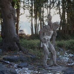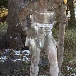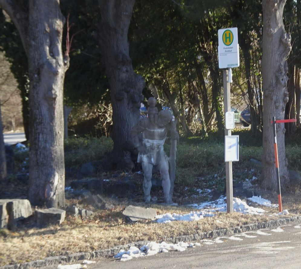 Zurzeit ist das große Kunstwerk, das unter einem knorrigen Lindenbaum steht, äußerst renovierungsbedürftig und das seinerzeit vorhandene Wasser ist versiegt.