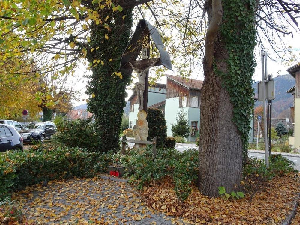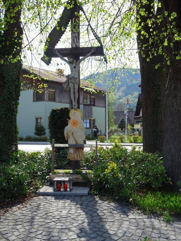 Gepflegt wurde dieses schöne Zeichen des Glaubens seinerzeit von Maria Schaffer, dann über viele Jahre von den Schwestern Maria und Elisabeth Schneller. Von ihnen hat Familie Weingerl diese Aufgabe übernommen. Als noch die Fronleichnamsprozession durch den Vormarkt führte (bis 2018), schmückten die genannten Personen auch den zweiten Altar vor dem Kreuz.