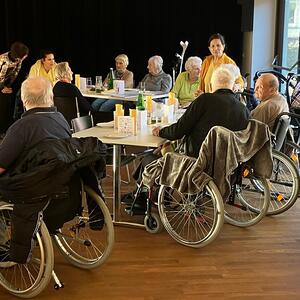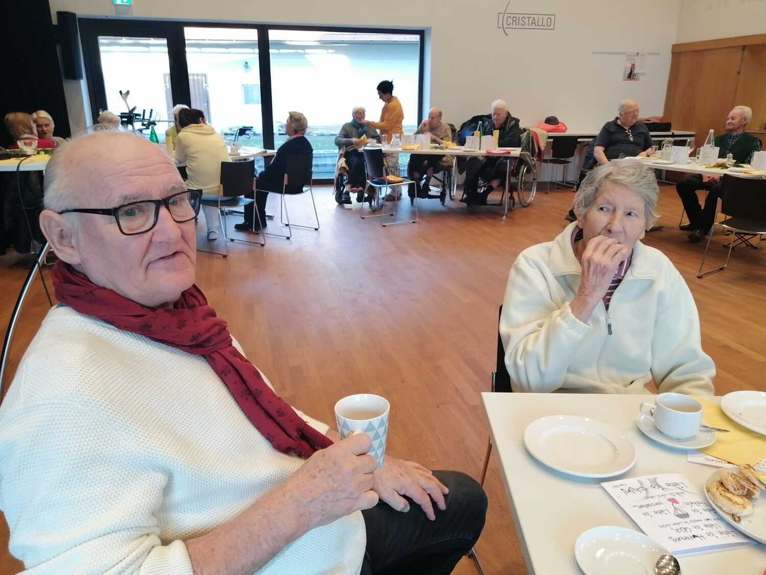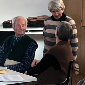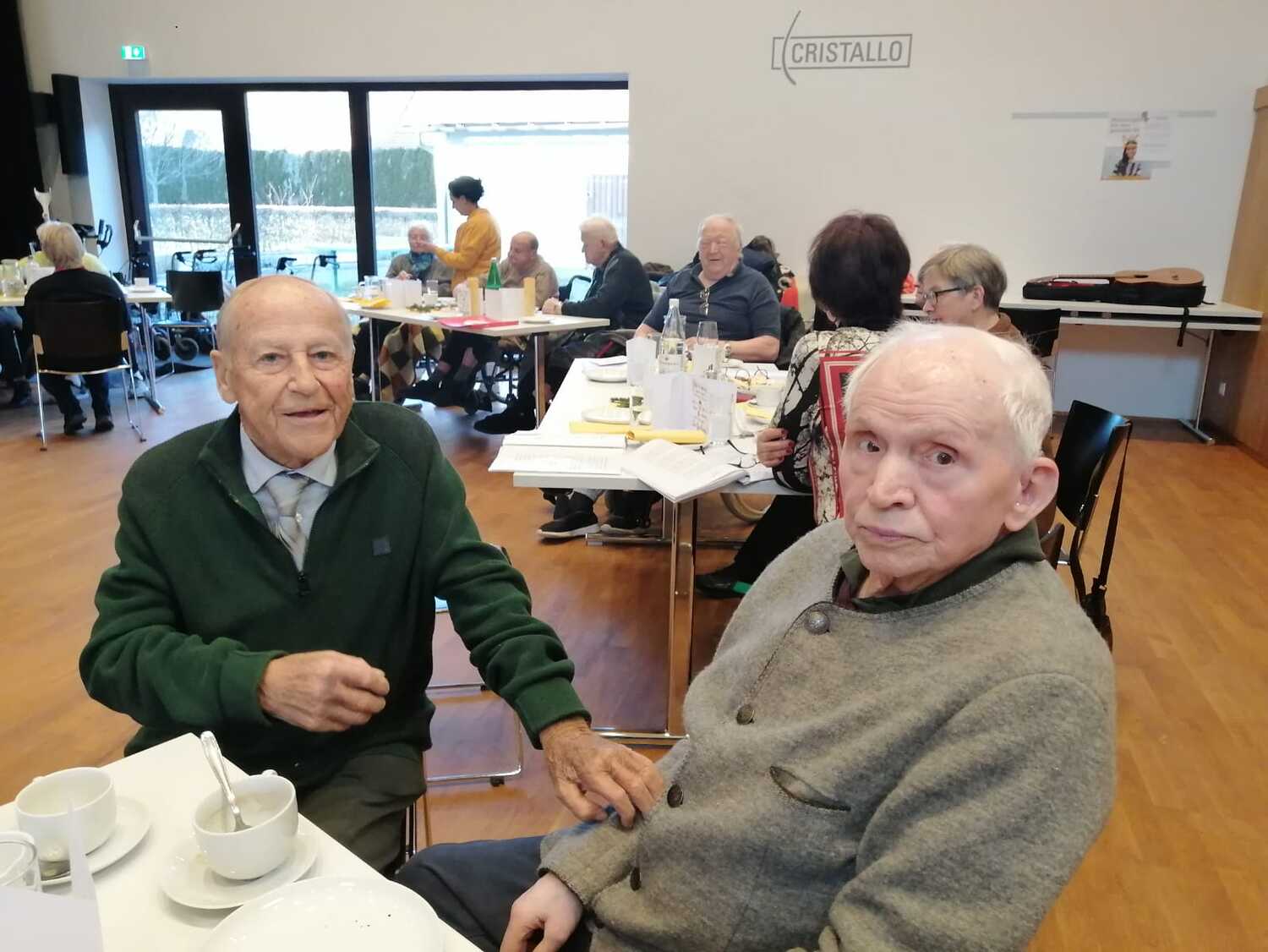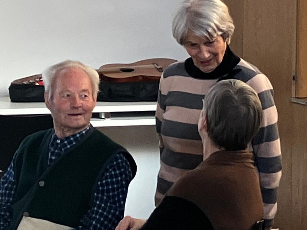 Das Team um den Se­ni­or­en­nach­mit­tag bietet den Be­such­er­:in­nen mit vie­len neu­en Ideen im­mer wie­der ein ab­wech­slungs­rei­ches Pro­gramm. So stand der Be­geg­nungs­nach­mit­tag im Jän­ner unter dem Motto "Sin­gen macht glück­lich". Be­son­ders kräf­tig un­ter­stütz­ten Herr Franz Riedl und Frau Emmy Ertl die Sin­gen­den mit Ihren Stim­men.