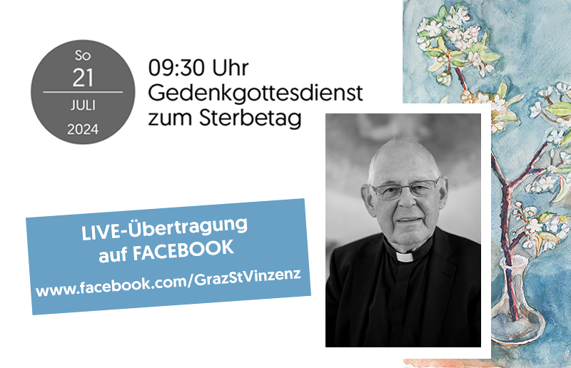Vor einem Jahr, am 19. Juli 2023, verstarb unser Pfarrer und VinziWerke-Gründer, Wolfgang Pucher CM, unerwartet im Urlaub. Zum ersten Sterbetag wollen wir in einer Hl. Messe und einem Sonntagsgottesdienst seiner gedenken.
