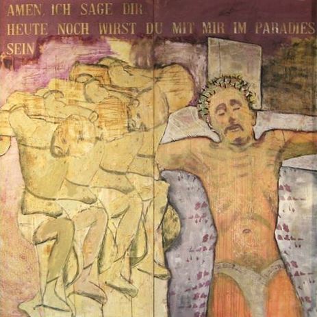 Auf der geschlossenen Außenseite des Altarbildes befinden sich vier völlig gleich aussehende Schacher zur Rechten des Gekreuzigten. Vielleicht finde auch ich einmal dort meinen Platz, wenn mein Leben vertan und verloren ist. So werden die Armen, die Verlorenen, die Sünder zu Boten, zu Aposteln der erbarmenden Liebe Gottes. Glücklich alle, die ihre Botschaft verstehen und annehmen können!