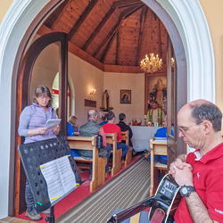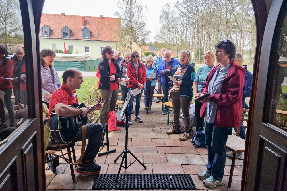 Das Ziel des Tages war die Marienkapelle im Kaiserwald. Dort feierten wir um etwas nach 11:00 Uhr einen Gottesdienst und ließen den wunderbaren Vormittag anschließend bei herrlichem Wetter und einer kleinen Agape ausklingen.