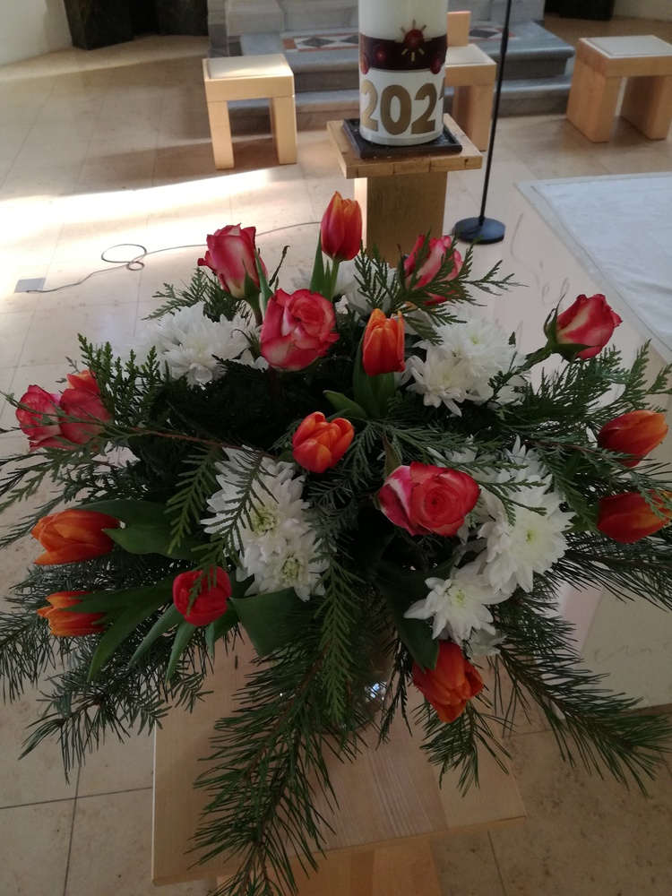 Mit einer Blume zum bevorstehenden Valentinstag wurden die Gottesdienstbesucher/innen bei der Sonntagsmesse am 13.02. überrascht.