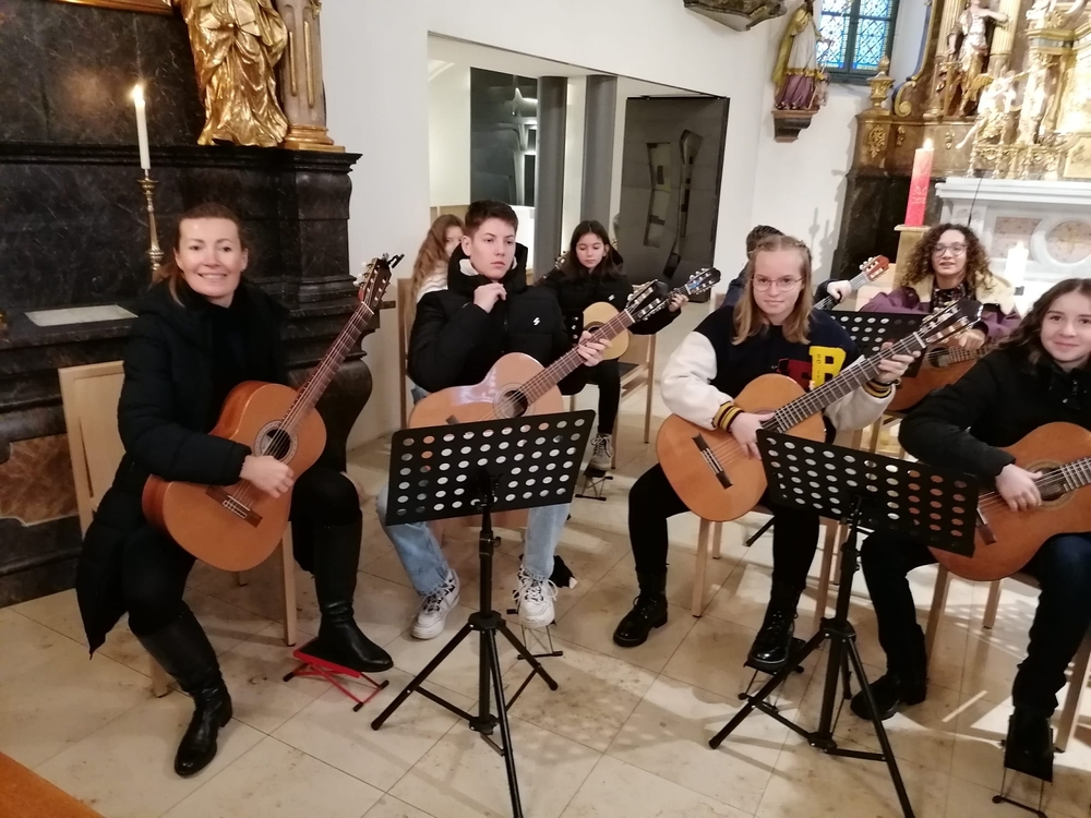 Das Gitarrenensemble der Musikschule Premstätten sorgte am 2. Adventsonntag bei der Wort-Gottes-Feier, die von WGF-Leiter Helmut Kirchengast gefeiert wurde, für eine wunderschöne musikalische Gestaltung.
