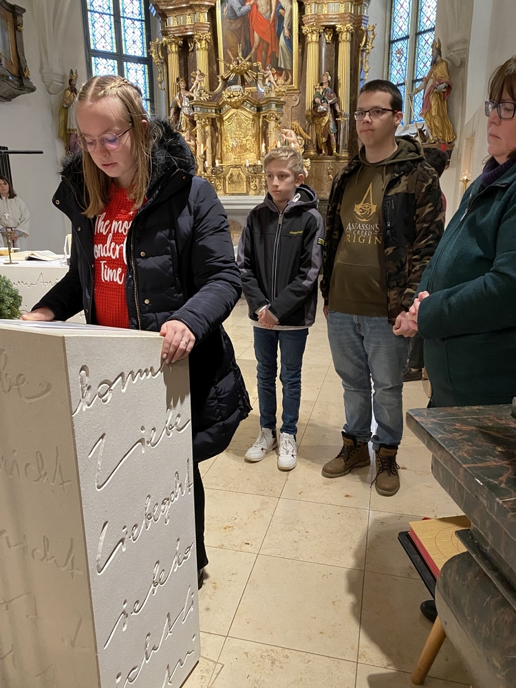 Die Christmette, dieses Mal eine Wort-Gottes-Feier mit Kommunionspendung, feierte Diakon Wolfgang Garber mit uns. In seiner Predigt lud er uns ein, es Weihnachten werden zu lassen, indem wir uns „in die Krippe unseres Nächsten“ legen, d.h. achtsam und einfühlsam mit unseren Mitmenschen umgehen, sodass „Menschwerdung“ erfahrbar wird. Stimmungsvolle Weihnachtslieder erfüllten die abendliche Kirche und die Herzen.