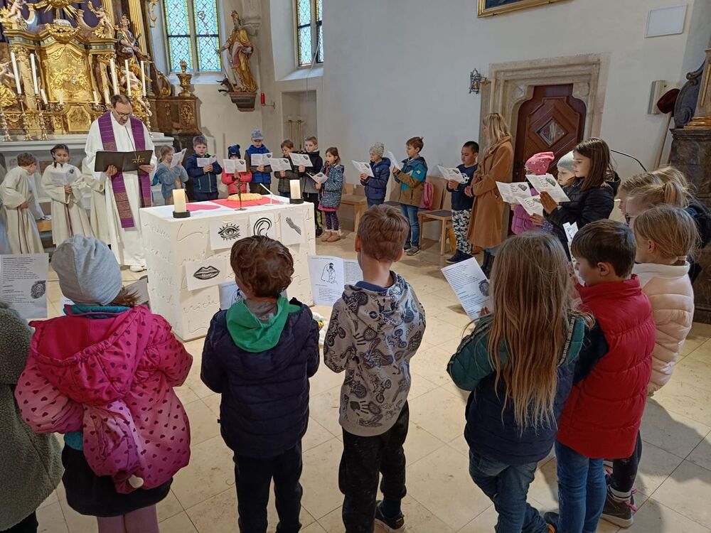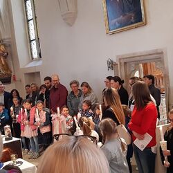 So viele Eltern begleiteten ihre Kinder und standen allen hilfreich zur Seite! Ein herzliches Danke dafür! Auch danke an Franziska Zachenegger und Cesar Cabesa, die die Kirchenführung mit den Kindern leiteten.