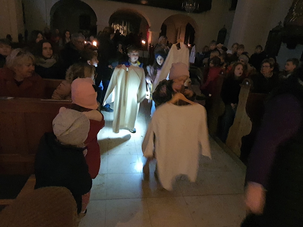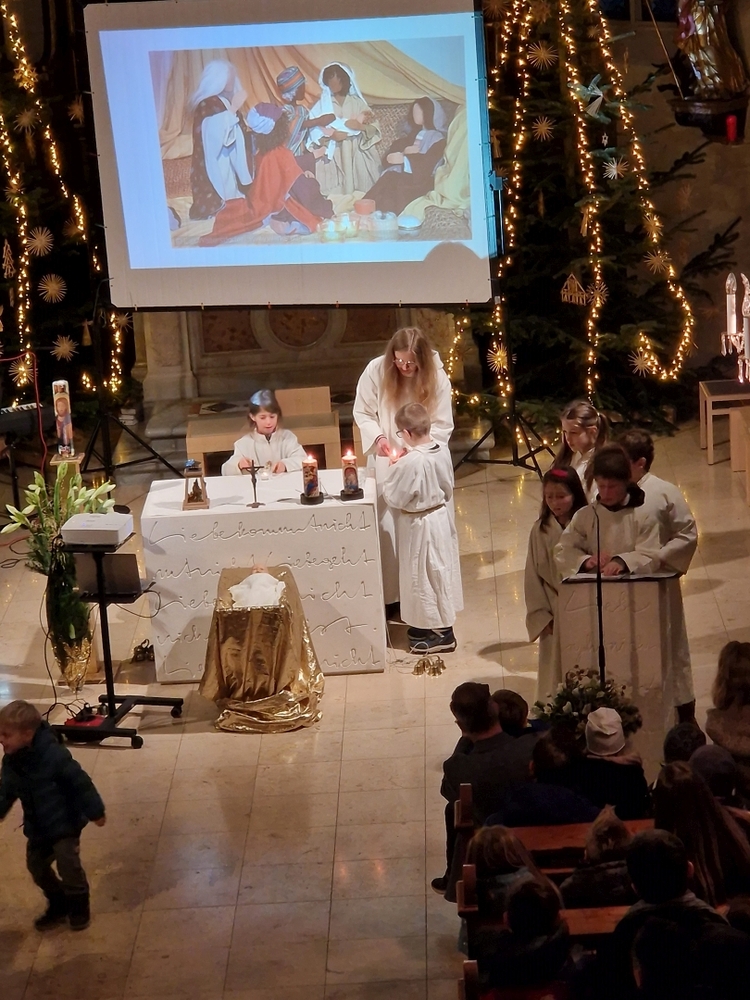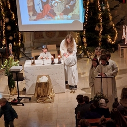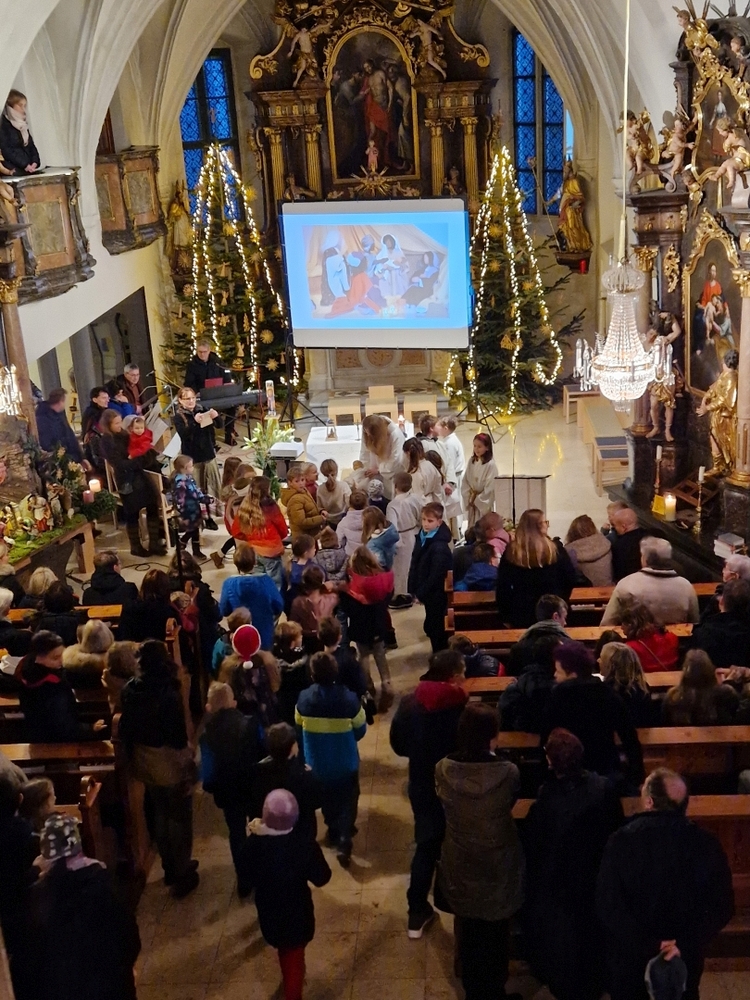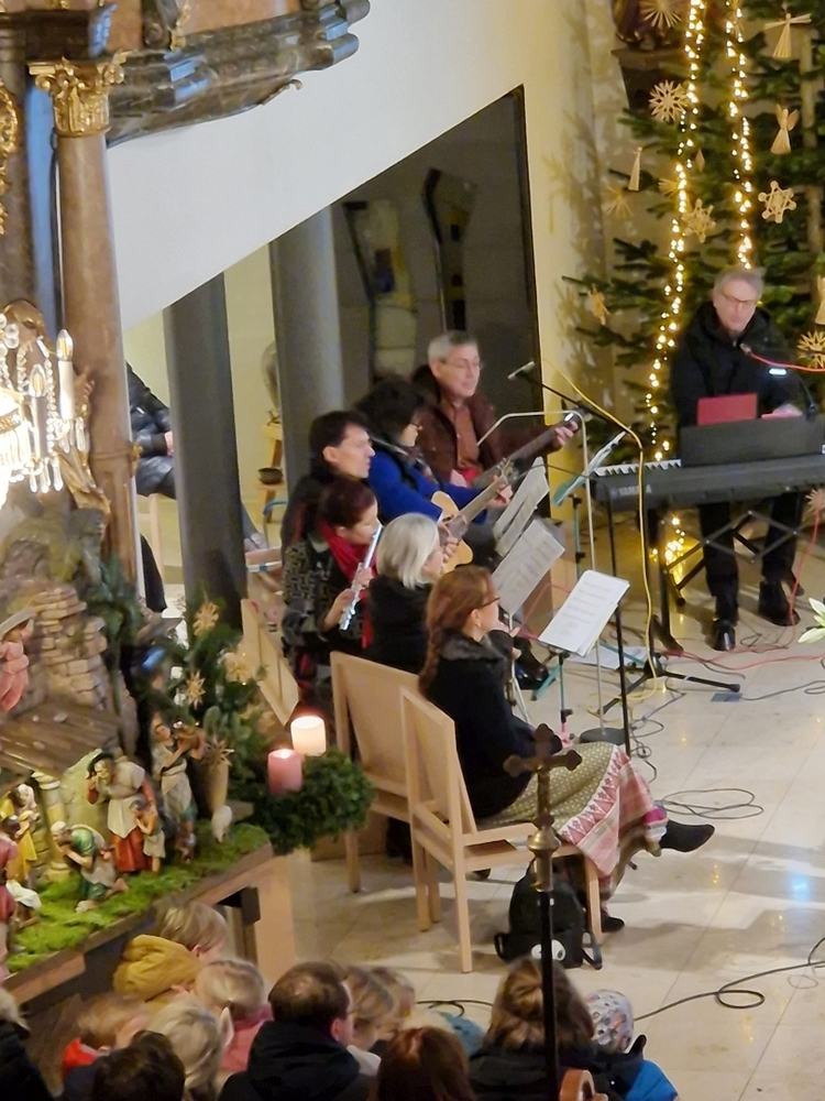 Liebevoll gestaltet war auch heuer wieder die Kinderkrippenfeier, die Pastoralreferentin Anja Asel mit vielen Kindern und Erwachsenen am Nachmittag des Heiligen Abends in unserer Pfarrkirche feierte. Schon vor der Feier erklangen Weihnachtslieder und stimmten alle auf das weihnachtliche Geschehen ein. Ein herzliches Danke an Anja und die mitwirkenden Minis sowie an unsere tolle Band für die stimmungsvolle Musik, die alle sehr begeisterte!