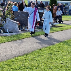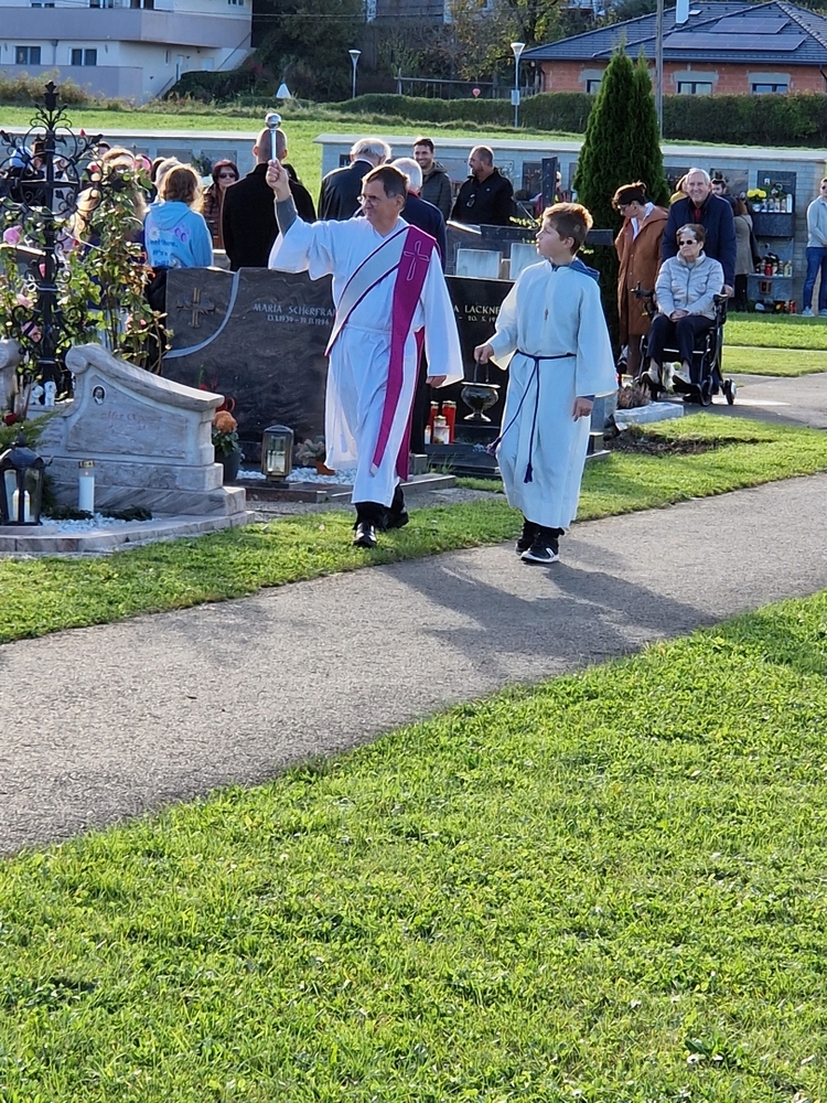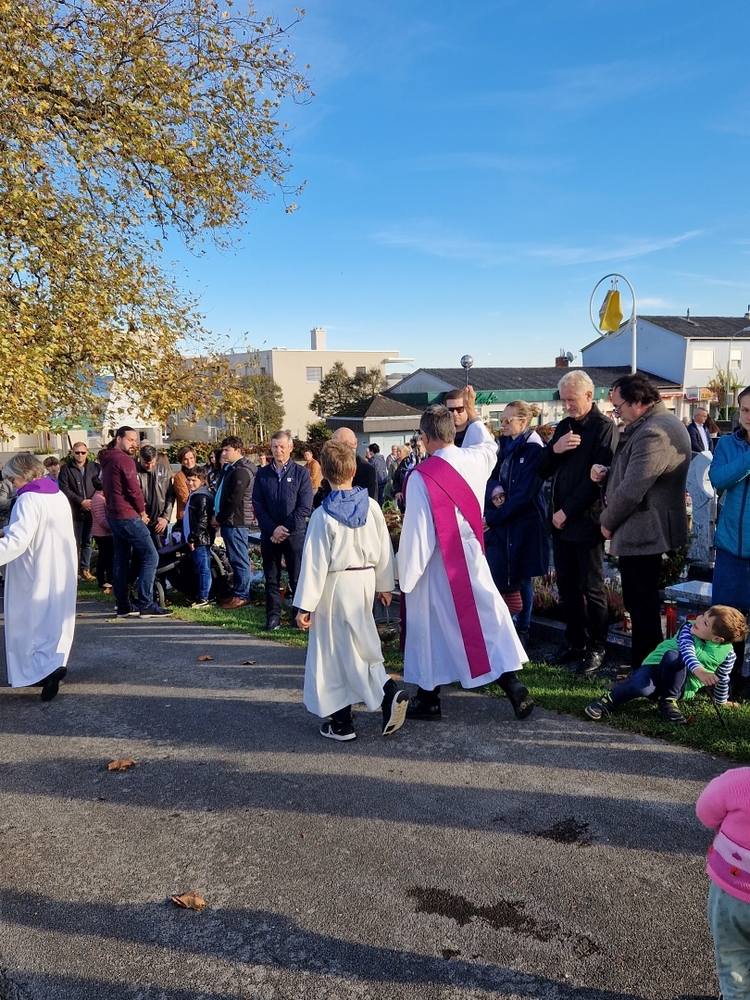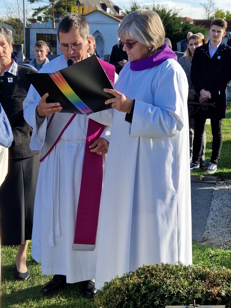 Bei strahlendem Sonnenschein fand am Allerheiligentag auf dem Friedhof die diesjährige Gräbersegnung statt, die Christa und Diakon Franz Habith sehr würdig und berührend gestalteten.
