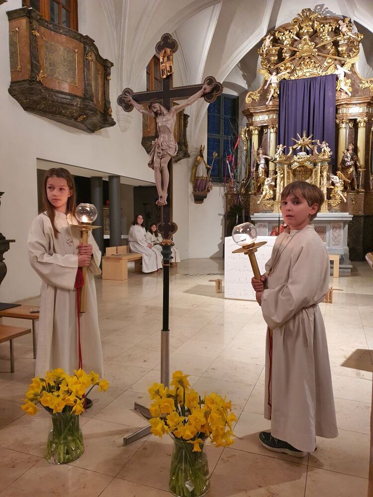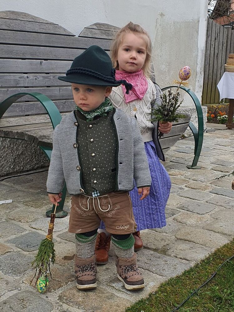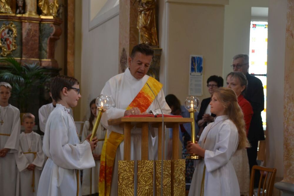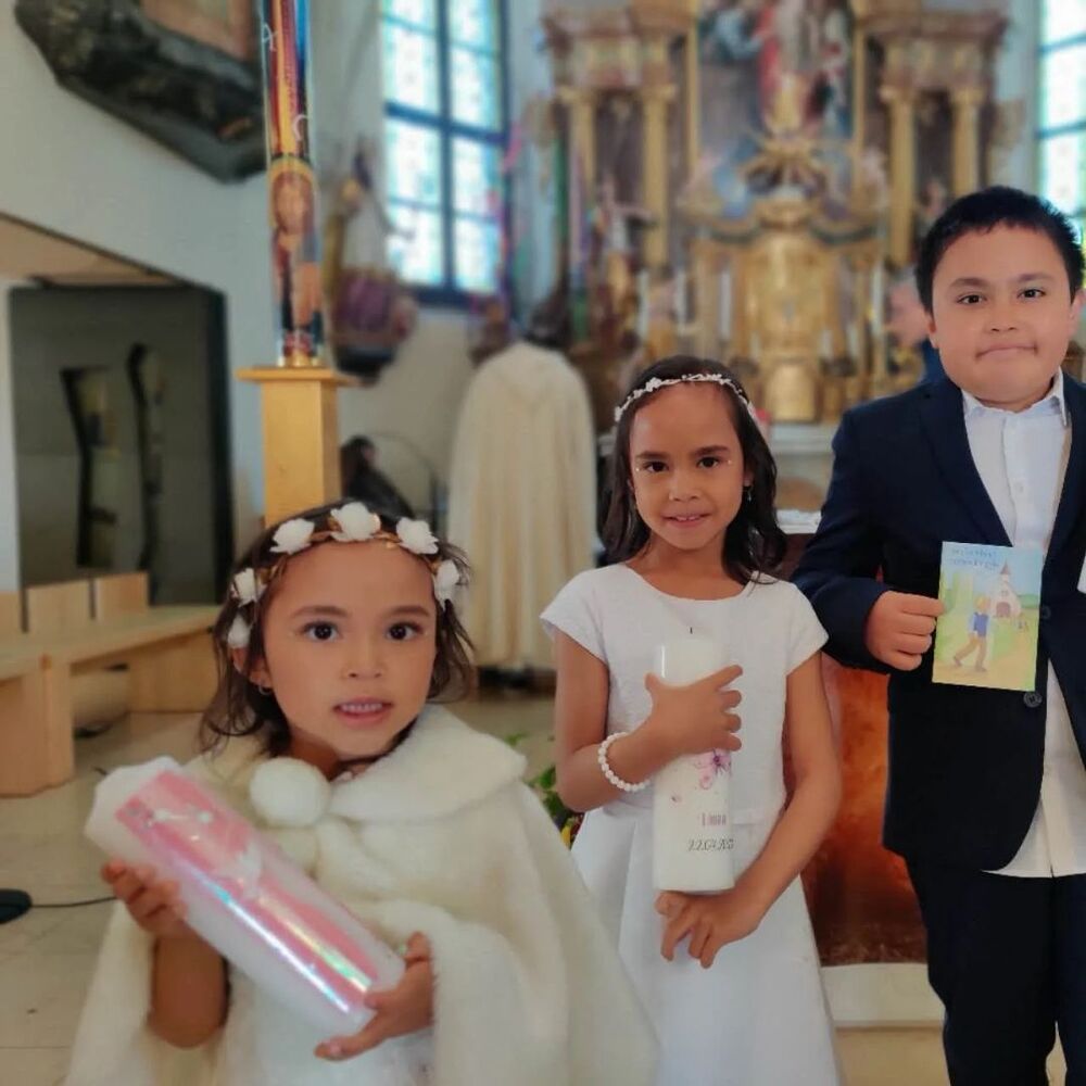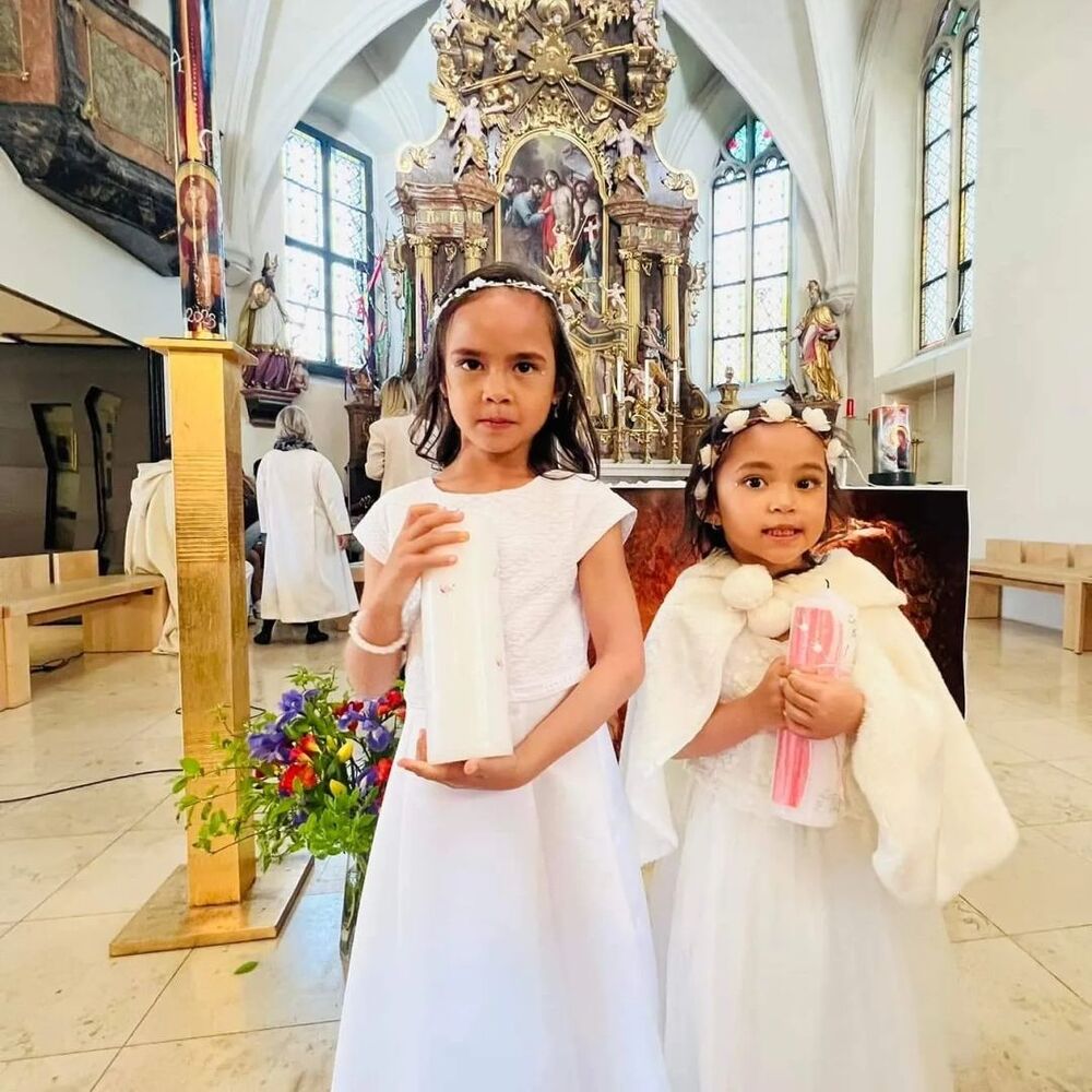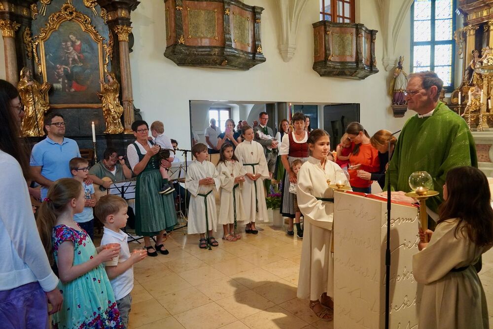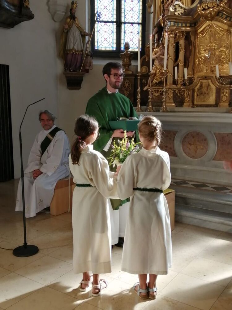 Die Schwestern Lea und Laura vom Erstkommunionkind Lukas Steinberger ließen sich mit drei und fünf Jahren taufen. Das war ein großes Geschenk für die Kinder, denn so konnten sie die Symbole der Taufe hautnah miterleben.