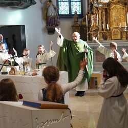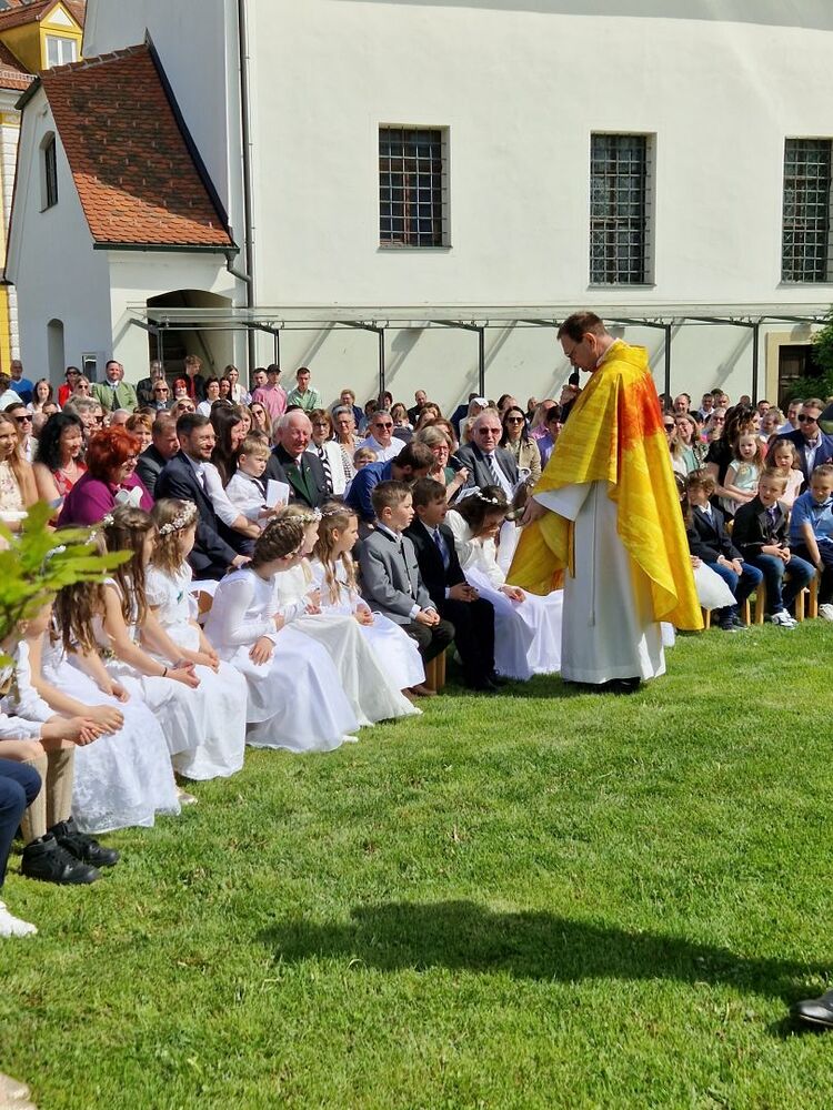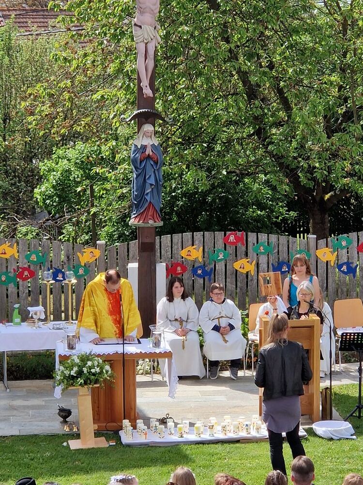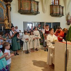 Ein großer Dank gilt allen, die dieses Fest den Kindern und ihren Familien ermöglicht haben: unserem Vikar Gerhard Hatzmann für die herzliche Feier, den Minis und der Mesnerin, dem Pfarrgemeinderat für das Richten des Feierplatzes im Freien, der Blasmusik, die alle begrüßte, den Musikerinnen und Musikern, die den Gottesdienst festlich umrahmten, und dem Sozialkreis für die Bewirtung nach dem Gottesdienst, sowie allen anderen, die still und unauffällig im Hintergrund zum Gelingen beigetragen haben.