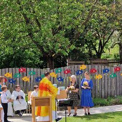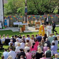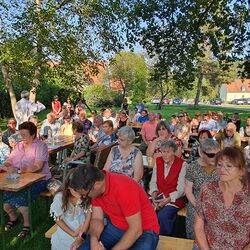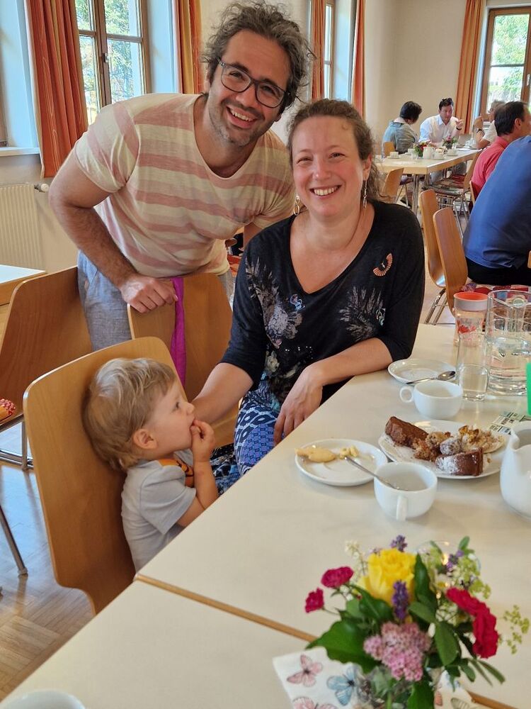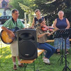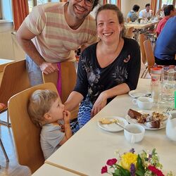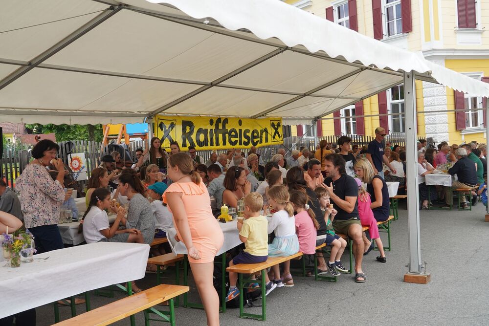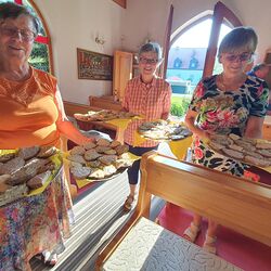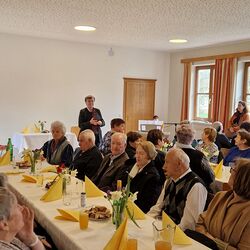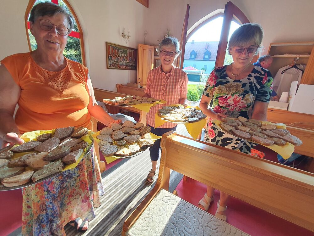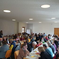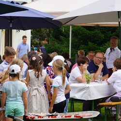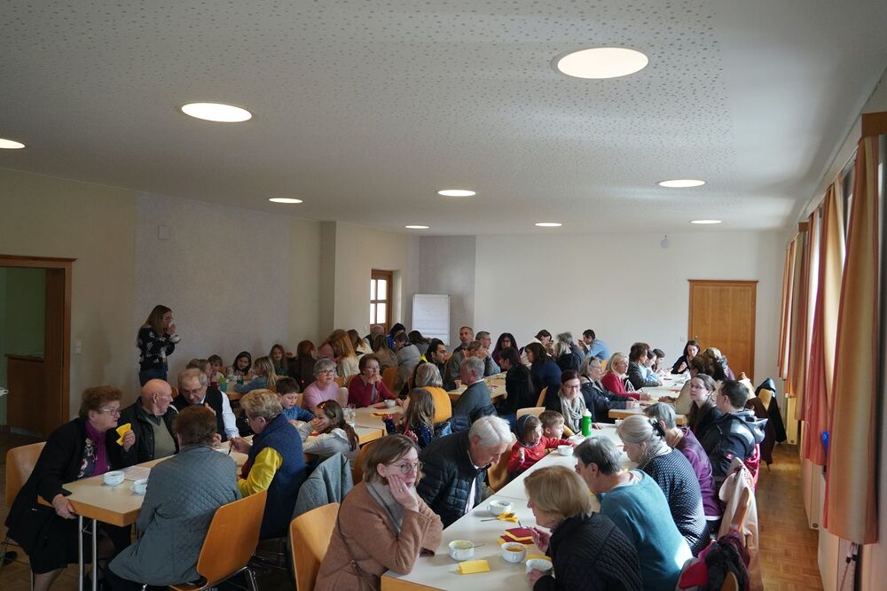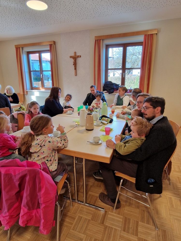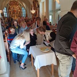 Im Anschluss an die schöne Feier waren alle zum „Pfarrcafe“ geladen, den der Kirchenchor mit viel Liebe vorbereitet hatte. Neben Kuchen und Kaffee genossen sichtlich alle das Zusammensitzen bei netten Gesprächen - und die Kinder das Spielen miteinander.