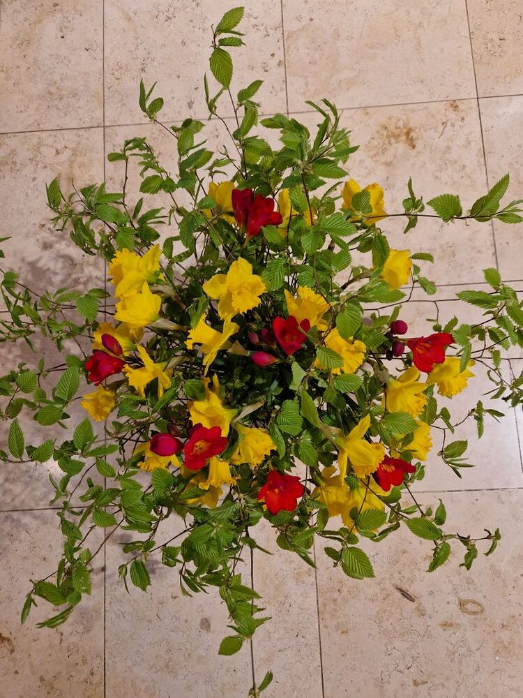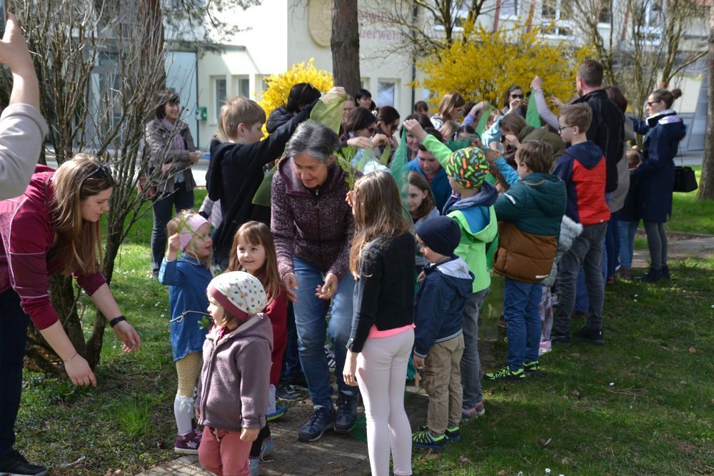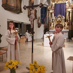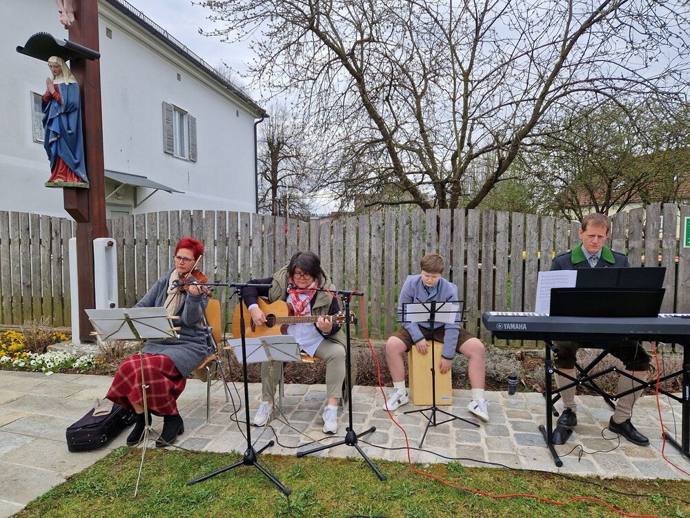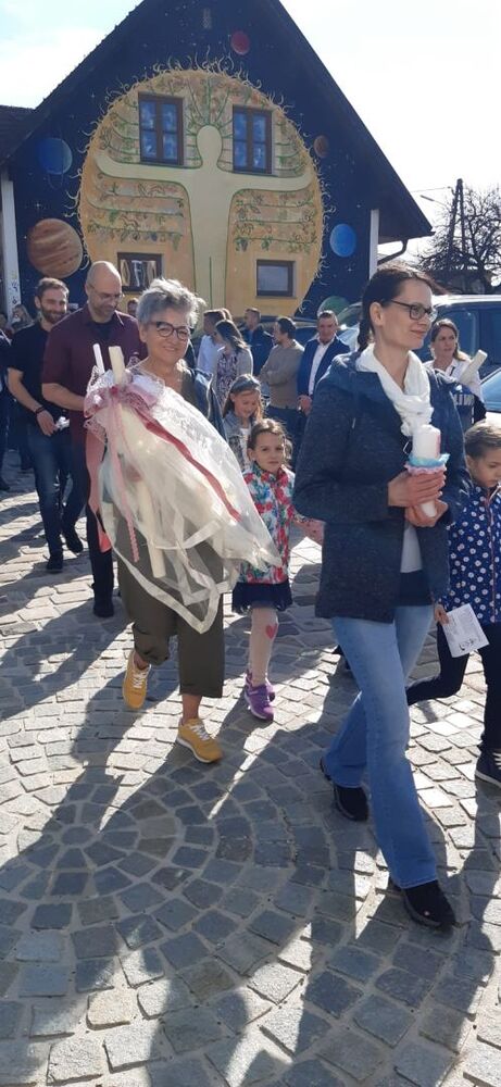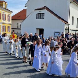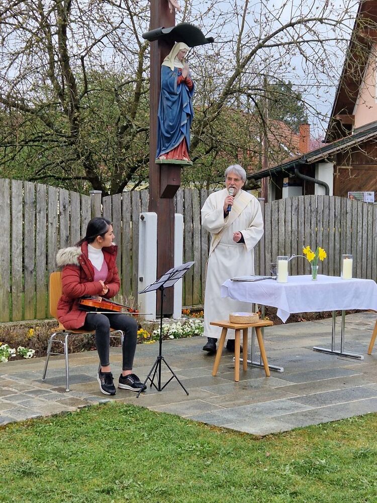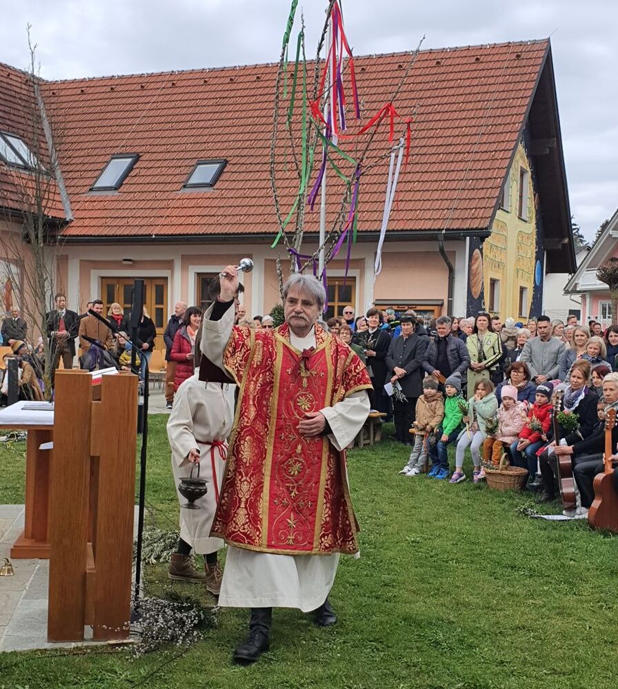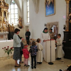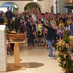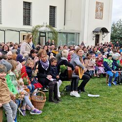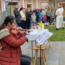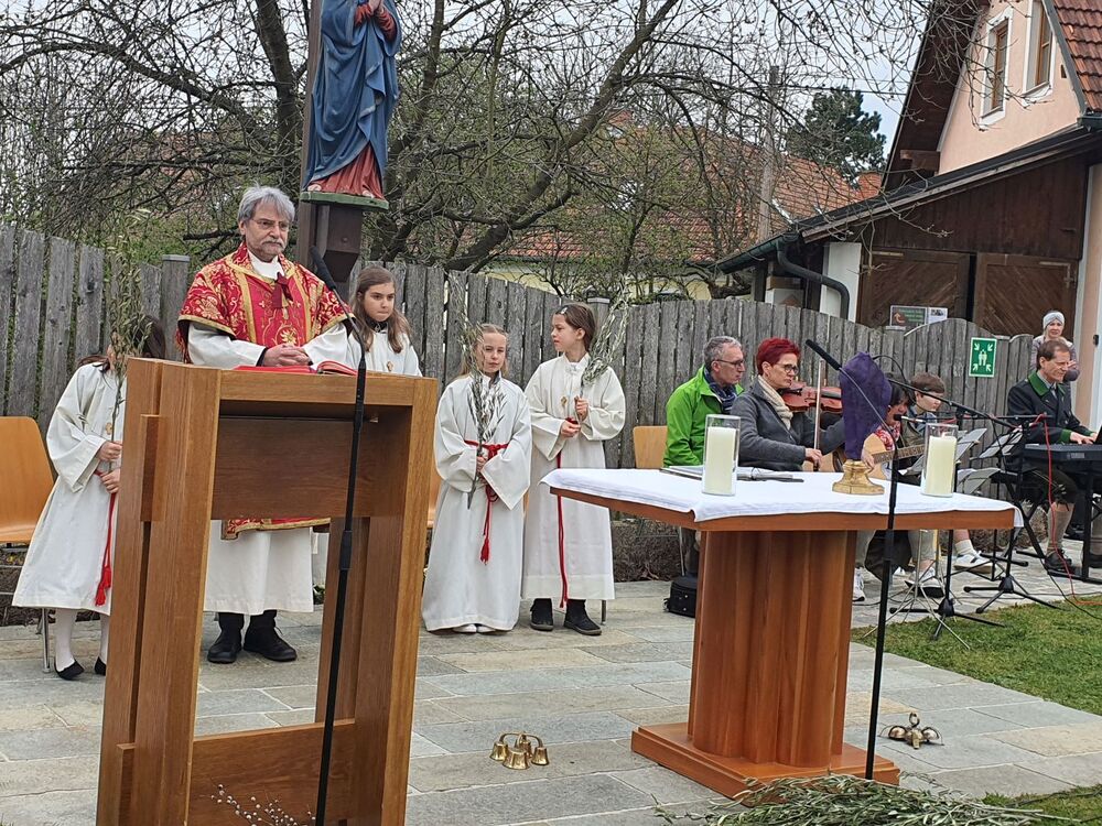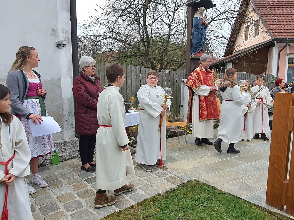Dieses freudige Geschehen feierten wir am 2. April in großer Gemeinschaft auf unserem Kirchplatz. Diakon Michi Zepf zelebrierte und viele wirkten an der Gestaltung mit: die Musikgruppe, der Kirchenchor, Minis und JS (Passion), die Kindergartenkinder (Lieder), MS-Schülerinnen (Fürbitten) und die LJ (Palmbuschen). Danke allen fürs Kommen, Mitfeiern und Mithelfen!