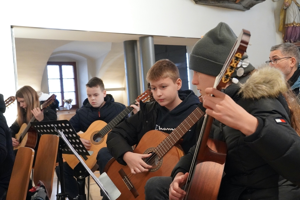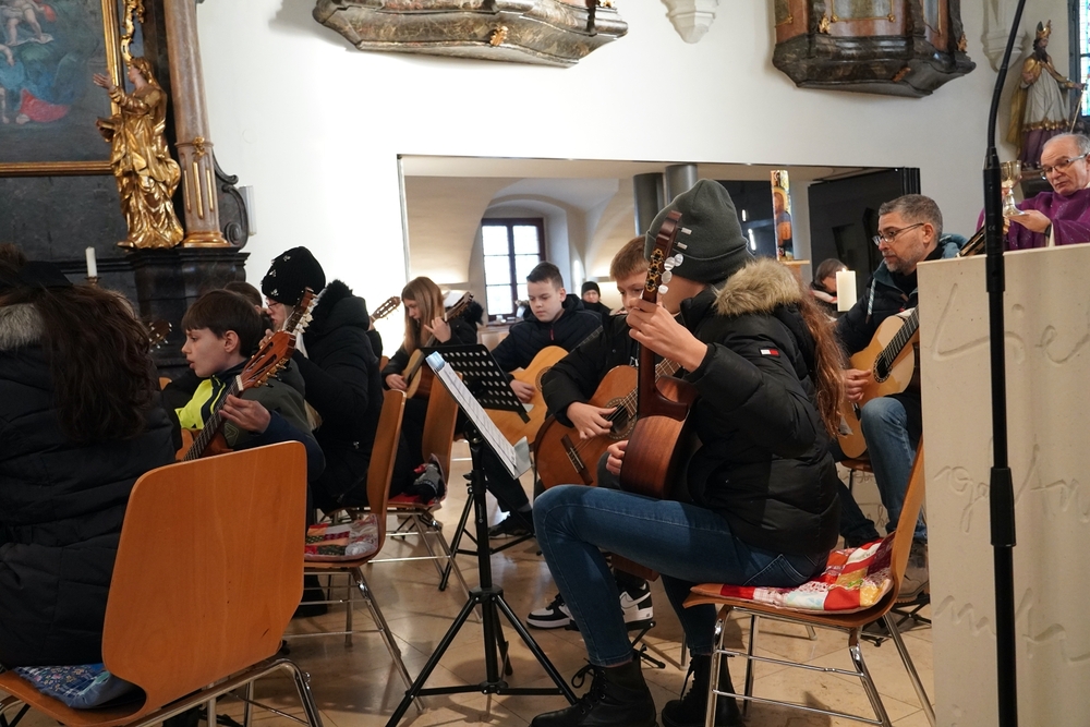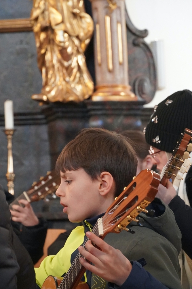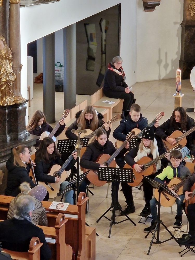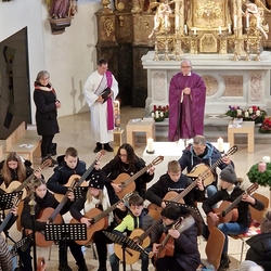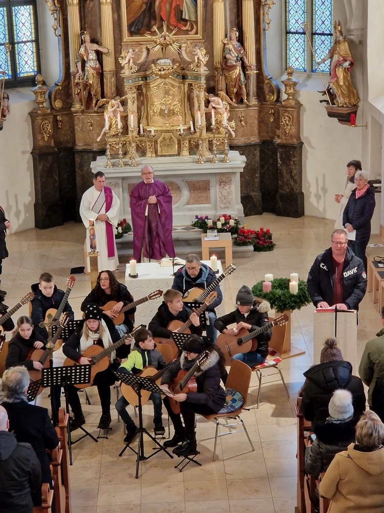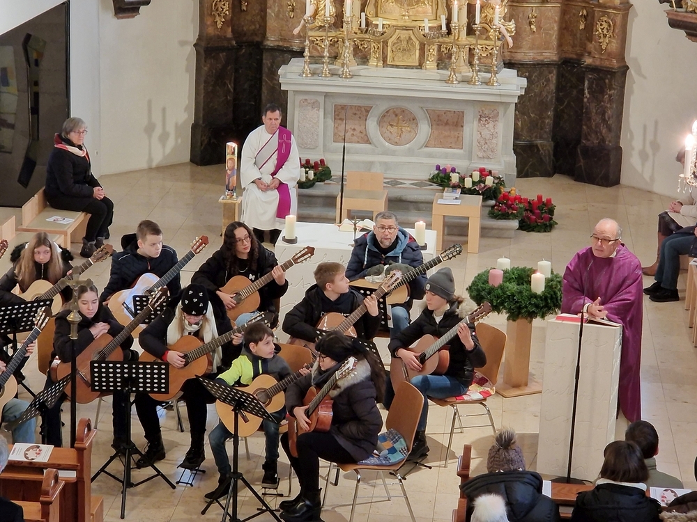 Gitarrenklänge erfüllten am Sonntag, dem 3. Dezember, den Kirchenraum bei der heiligen Messe, die Vikar Norbert Glaser und Diakon Franz Habith mit der Pfarrgemeinde feierten.