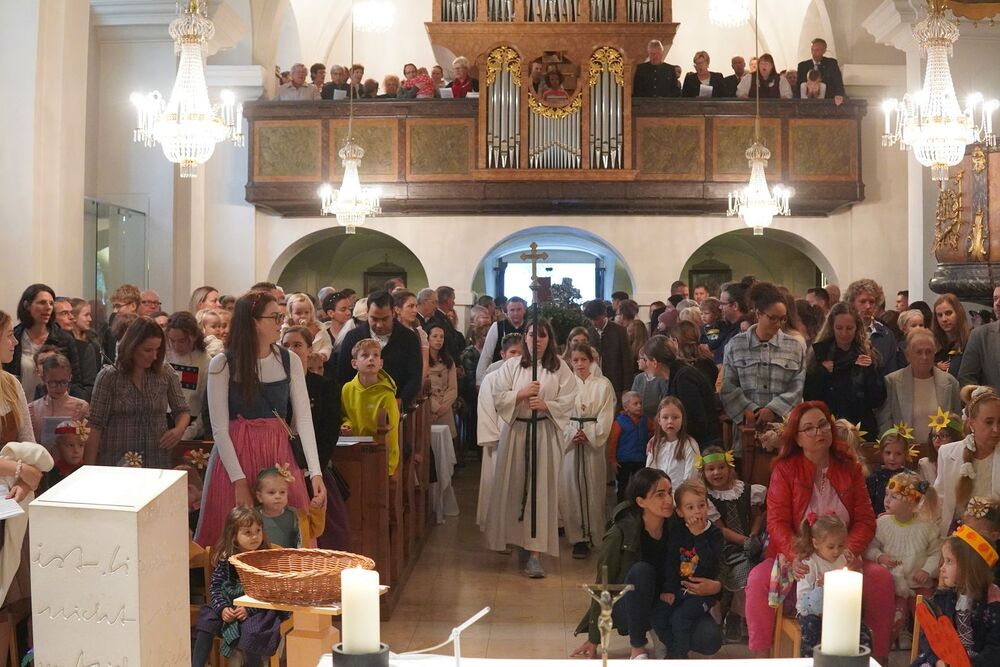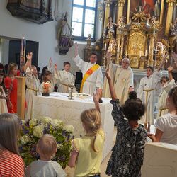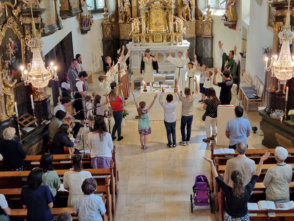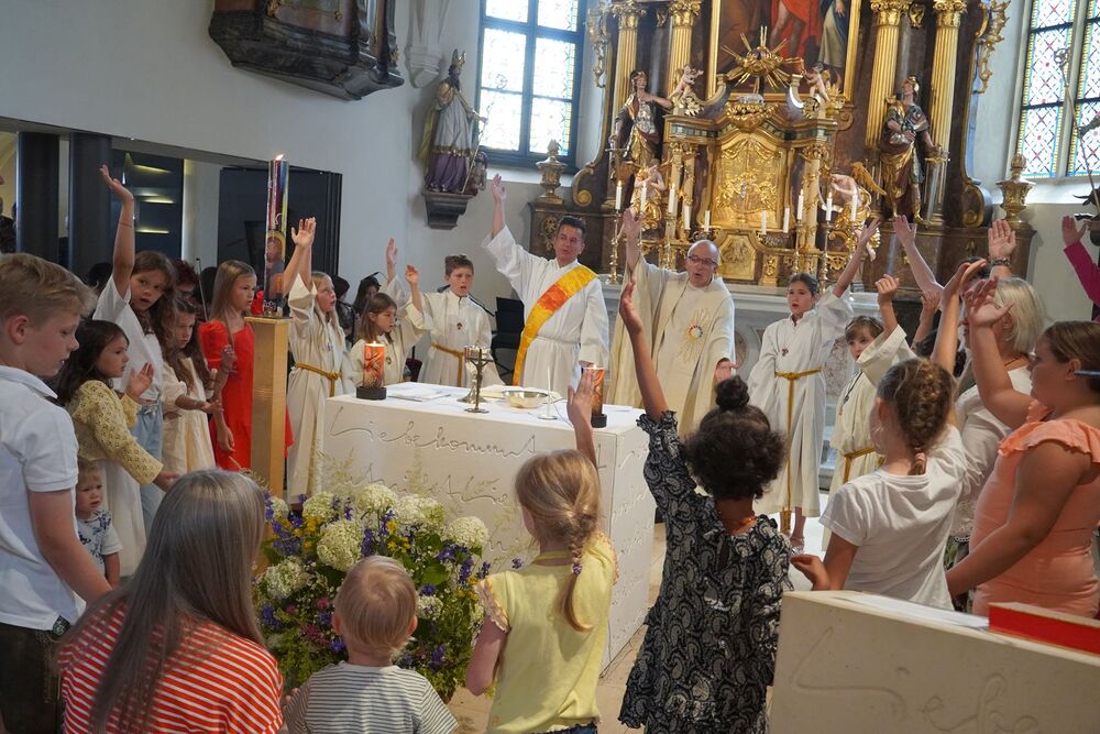 Bei strahlendem Wetter zogen 40 Kinder mit ihren Taufpatinnen und Taufpaten in die Kirche ein.