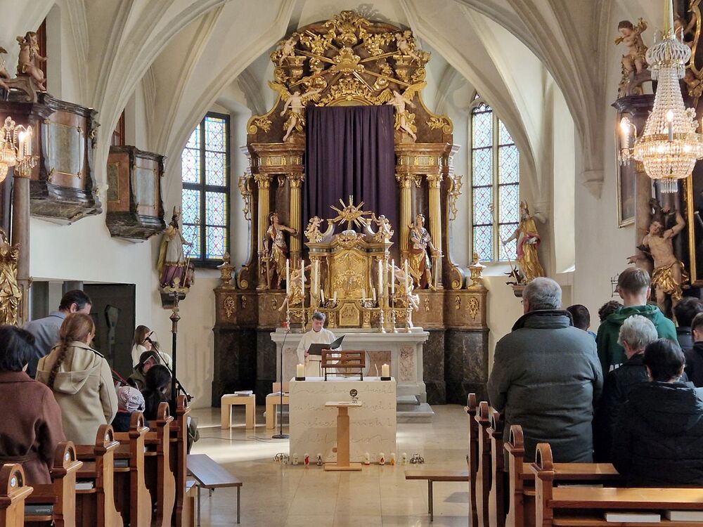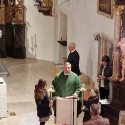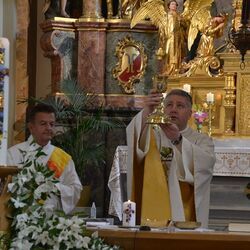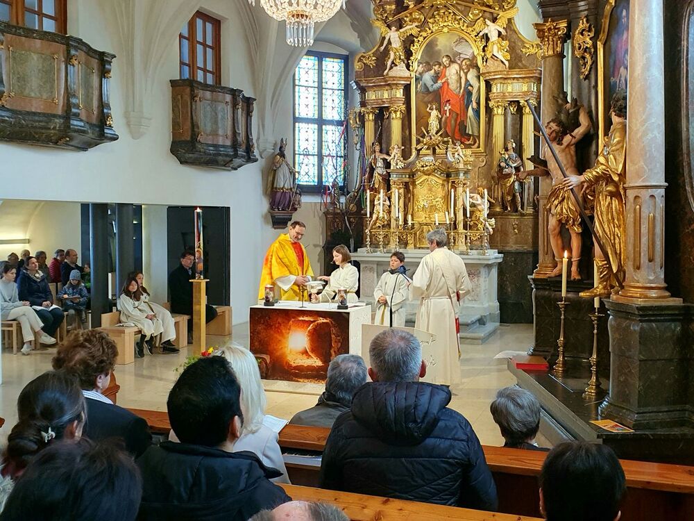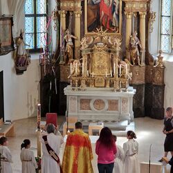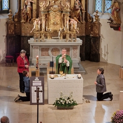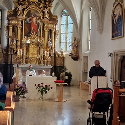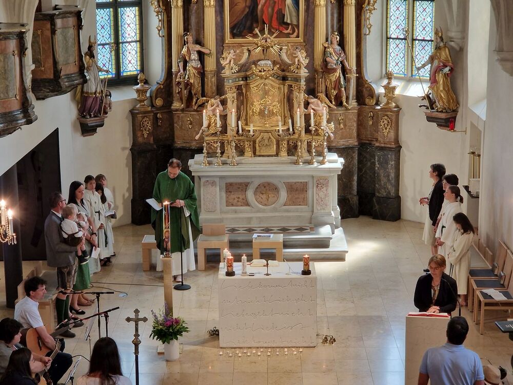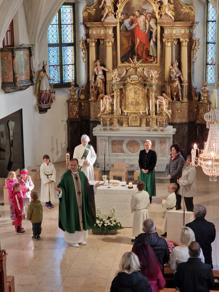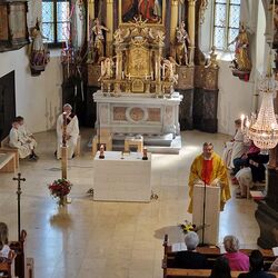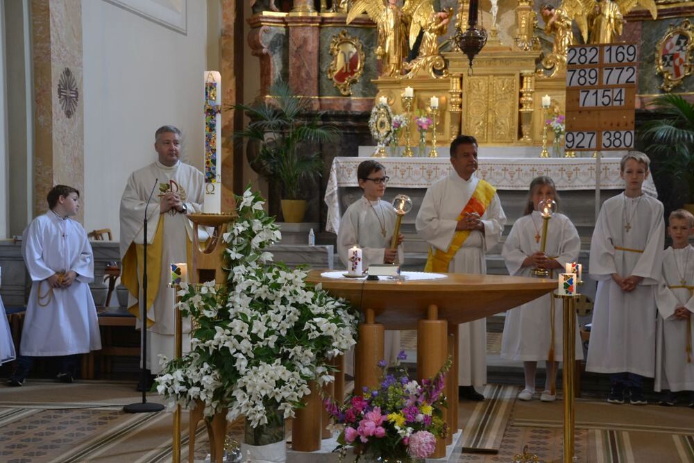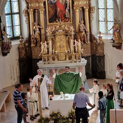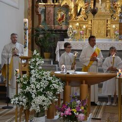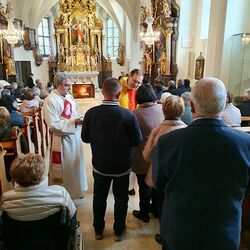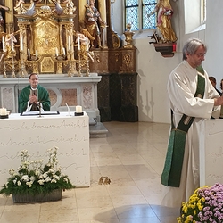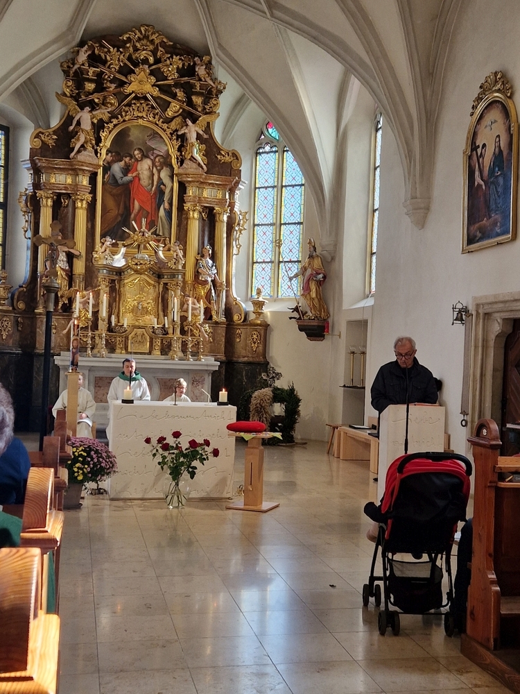 Nach herzlicher Begrüßung durch Diakon Michi Zepf zelebrierte Markus, der ehemals Pastoralpraktikant in unserer Pfarre und Pastoralreferent im Seelsorgeraum Kaiserwald gewesen war, in festlichem Rahmen die heilige Messe.