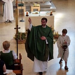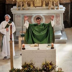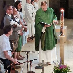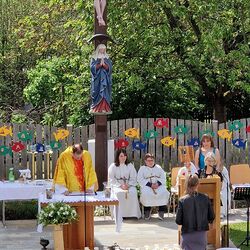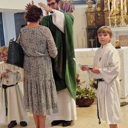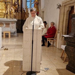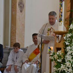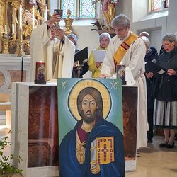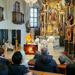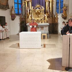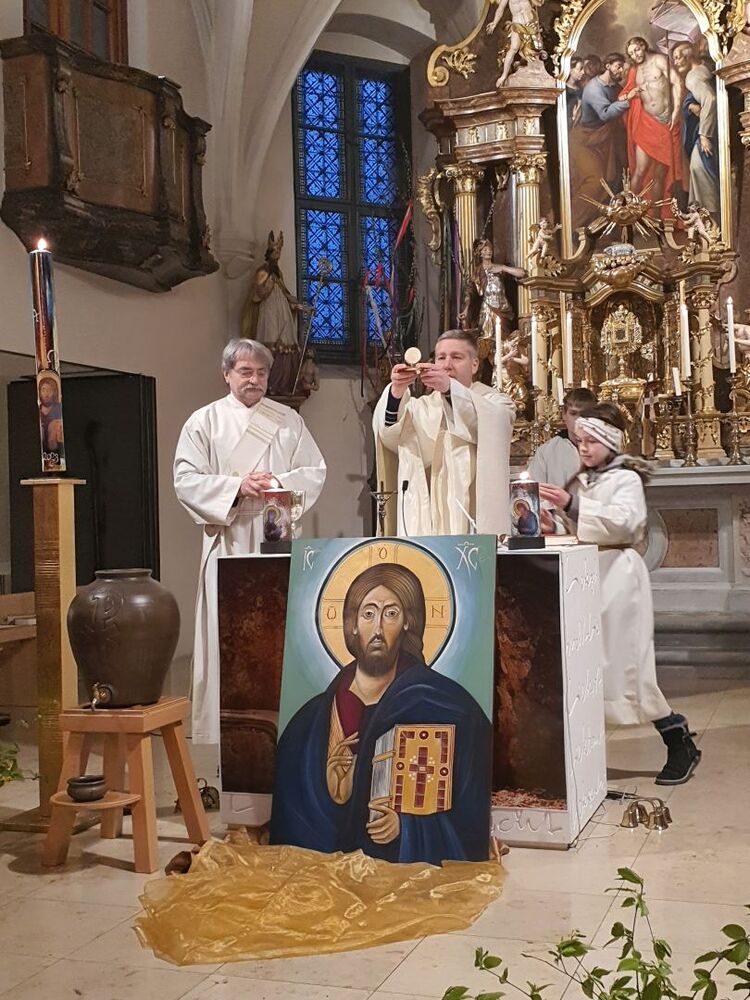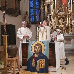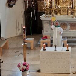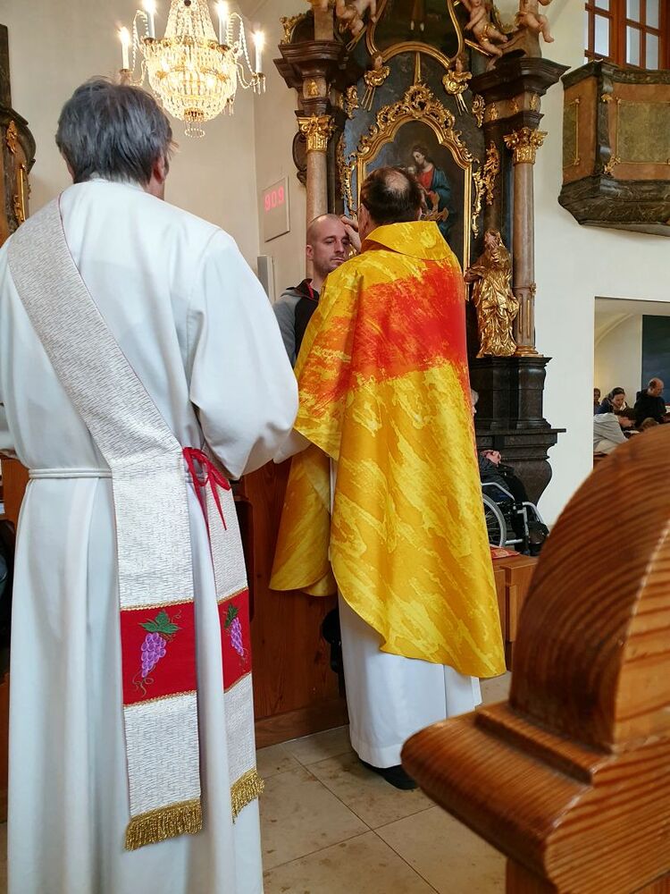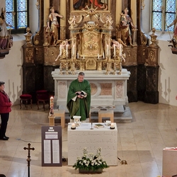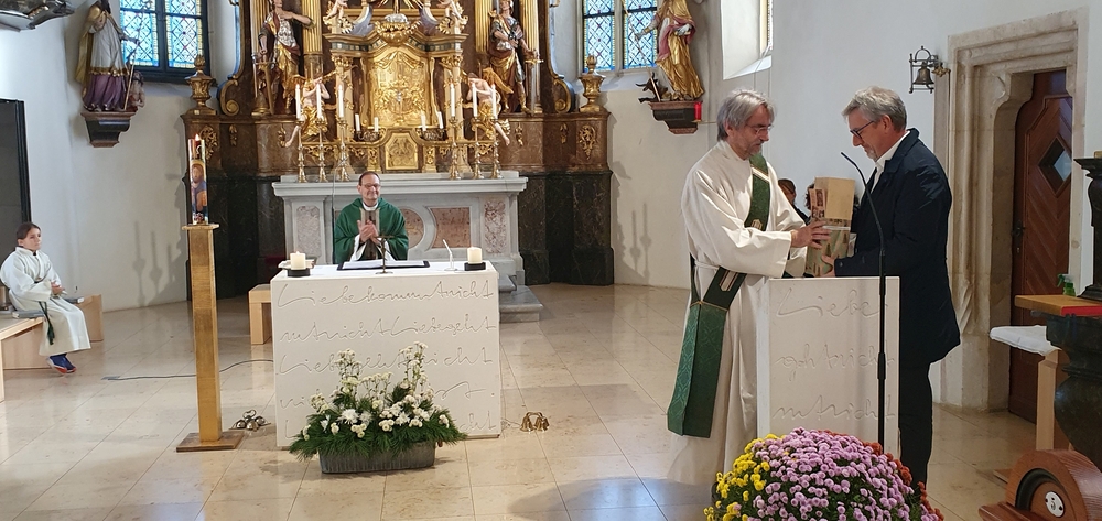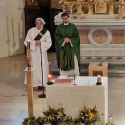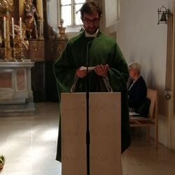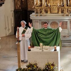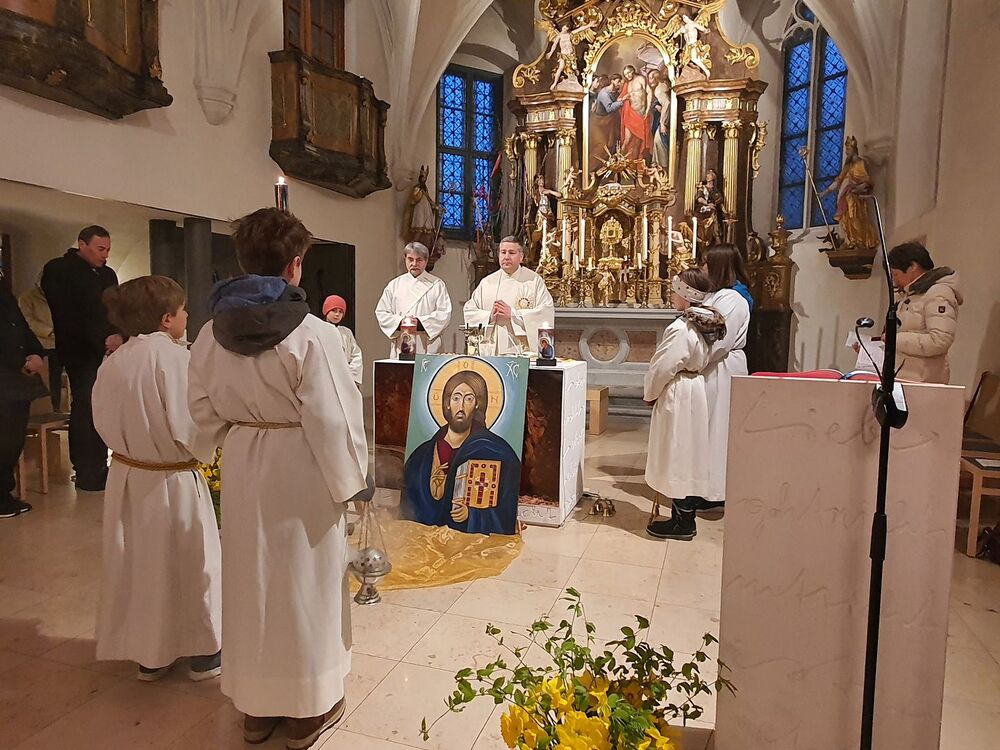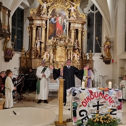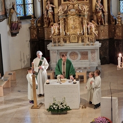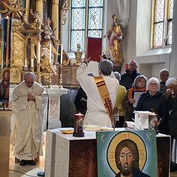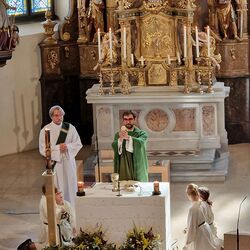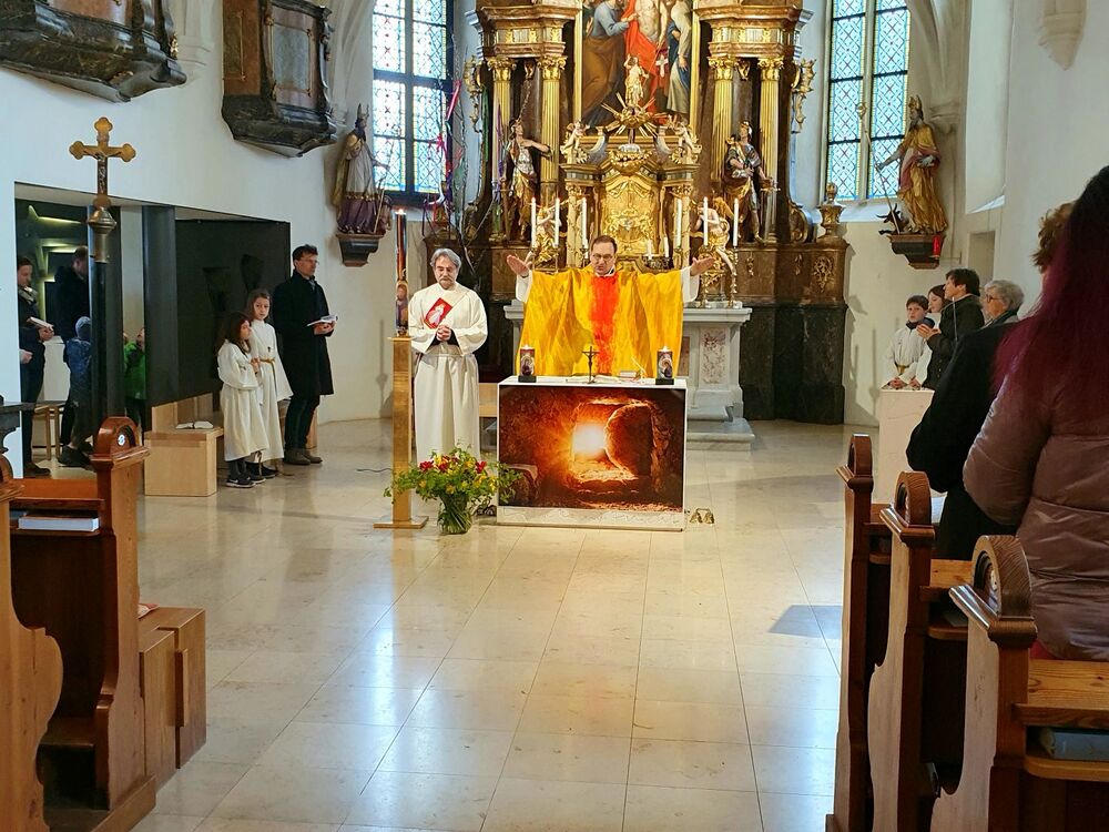 Nach herzlicher Begrüßung durch Diakon Michi Zepf zelebrierte Markus, der ehemals Pastoralpraktikant in unserer Pfarre und Pastoralreferent im Seelsorgeraum Kaiserwald gewesen war, in festlichem Rahmen die heilige Messe.