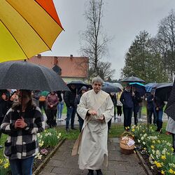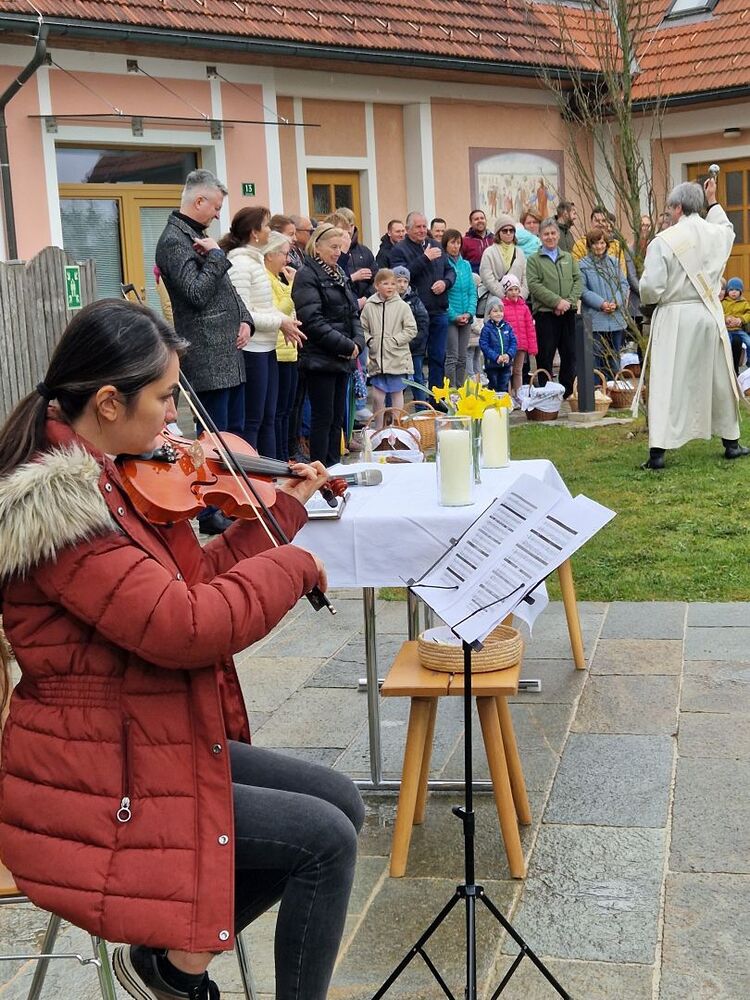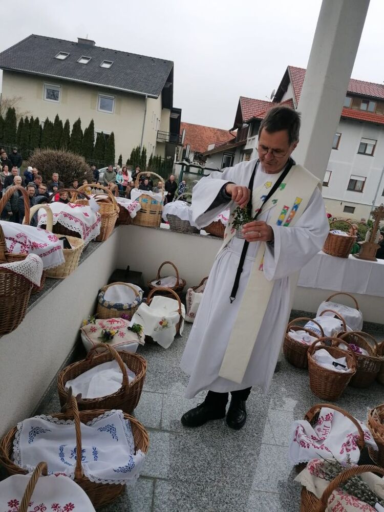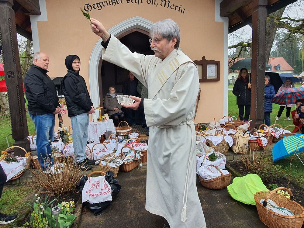 Trotz des wankelmütigen Wetters kamen viele Menschen, um diesen schönen Brauch zu erleben und nicht nur ihre Osterspeisen, sondern auch sich selbst segnen zu lassen.