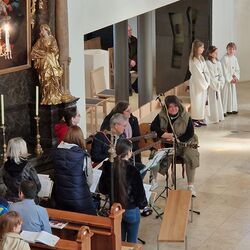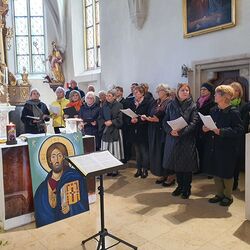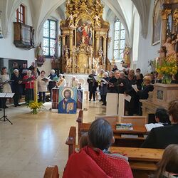 Der heurige Ostermontaggottesdienst, den Vikar Norbert Glaser mit uns feierte, wurde musikalisch vom Gemeinschaftschor der Pfarren Dobl, Premstätten und Wundschuh gestaltet. Unter der Leitung von Stefan Stampler und Magdalena Moser erklang - neben traditionellen Osterliedern - Musik von Felix Mendelssohn Bartholdy (Ordinarium für gemischten Doppelchor a cappella), die unseren Kirchenraum erfüllte und festliche, freudige Stimmung verbreitete.