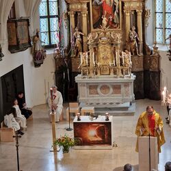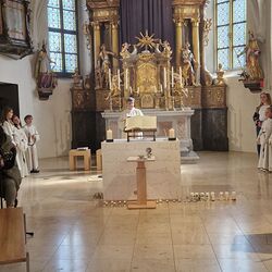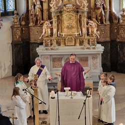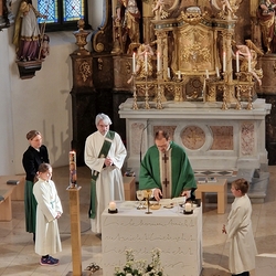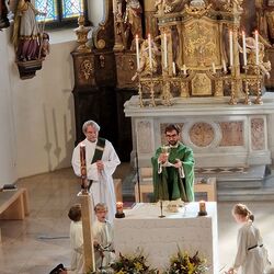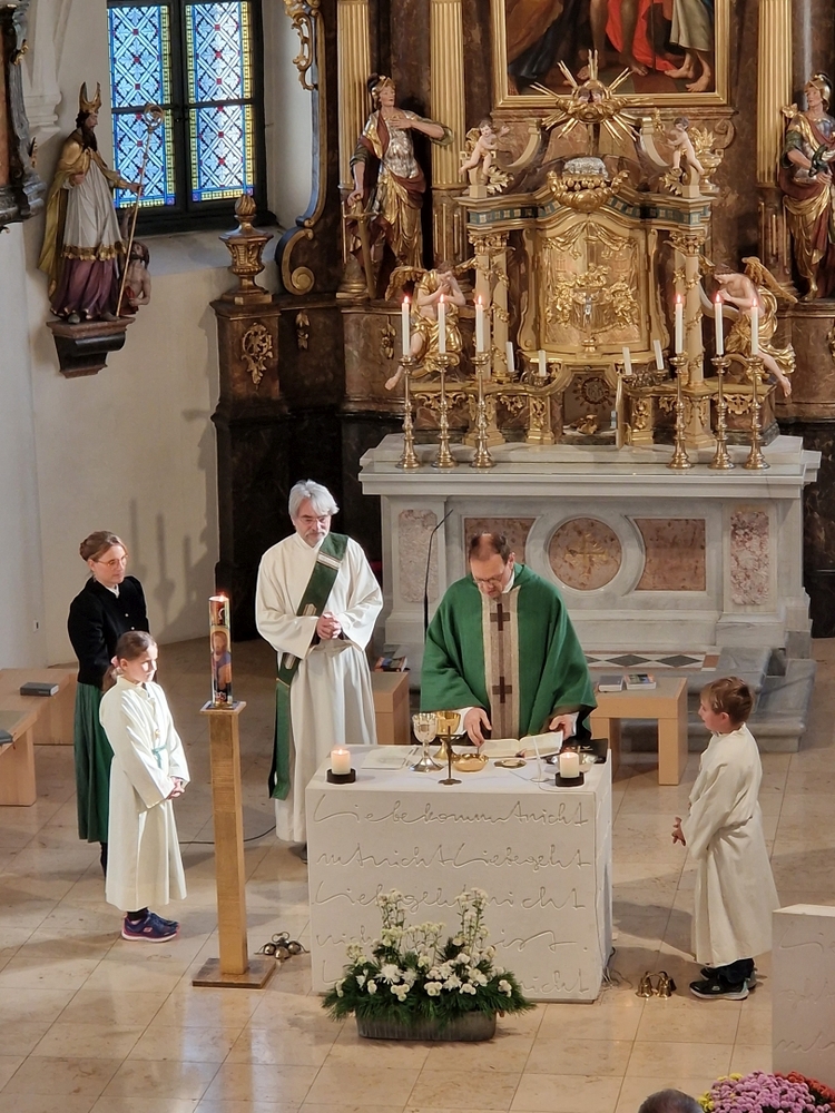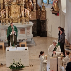 Der feierliche Gottesdienst mit Vikar Gerhard Hatzmann wurde vom Kirchenchor unter der Leitung unserer Organistin Magdalena Moser musikalisch gestaltet.