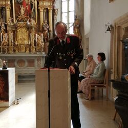 Vikar Norbert Glaser sprach in seiner Predigt vom göttlichen und weltlichen Beistand. Wir dürfen in unserem Leben immer Gott um Hilfe und Beistand bitten. Jesus hat vorgezeigt, was Nächstenliebe bedeutet, indem er sich der Armen, Schwachen und Ausgegrenzten angenommen hat. In vielen Notsituationen und Gefahren sind wir aber konkret auf weltlichen Beistand angewiesen. Diesen leistet gerade die Freiwillige Feuerwehr mit ihrem Einsatz und Dienst am Nächsten in besonderer Weise. Auch dazu bedarf es des göttlichen Beistands, des Segens von oben, den wir allen Feuerwehrleuten wünschen.