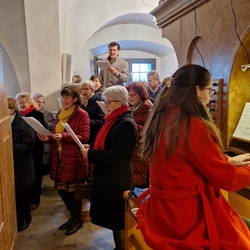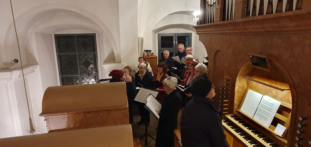 Unter der Leitung von Alisa Adzhadzh und mit Johannes Chum an der Orgel erklangen adventliche Melodien, die sowohl die freudige Erwartung als auch die Sehnsucht nach Zusammenhalt und die Hoffnung auf Frieden ausdrückten.