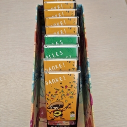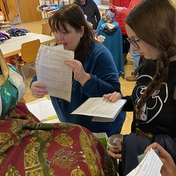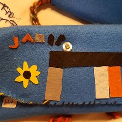 Dieser Arbeitsvorgang hat wirklich einiges von unseren Kindern abverlangt. Sie mussten sich für eine Farbe bei Stoff und Faden entscheiden, dann schneiden, den Stoff mit Schlingstichen zu einer Tasche zusammennähen, sich einen Knopf aussuchen und diesen auch alleine annähen und schlussendlich sehr mutig sein, da sie für den Knopf noch ein Loch in ihre Tasche schneiden mussten. Dann fast am Ende überlegten sich die Kinder auch noch ein Motiv, das sie auf ihre Taschen klebten und drehten ihre Schnüre, damit sie ihre Taschen auch umhängen konnten. Jede Tasche ist einmalig und wunderschön geworden.