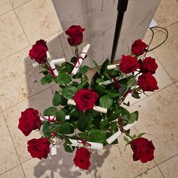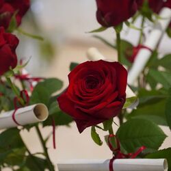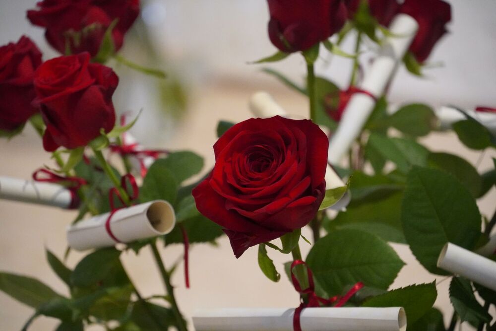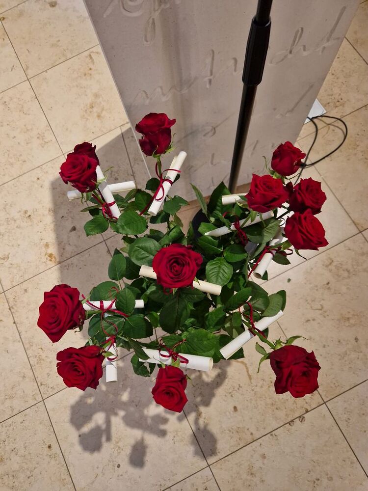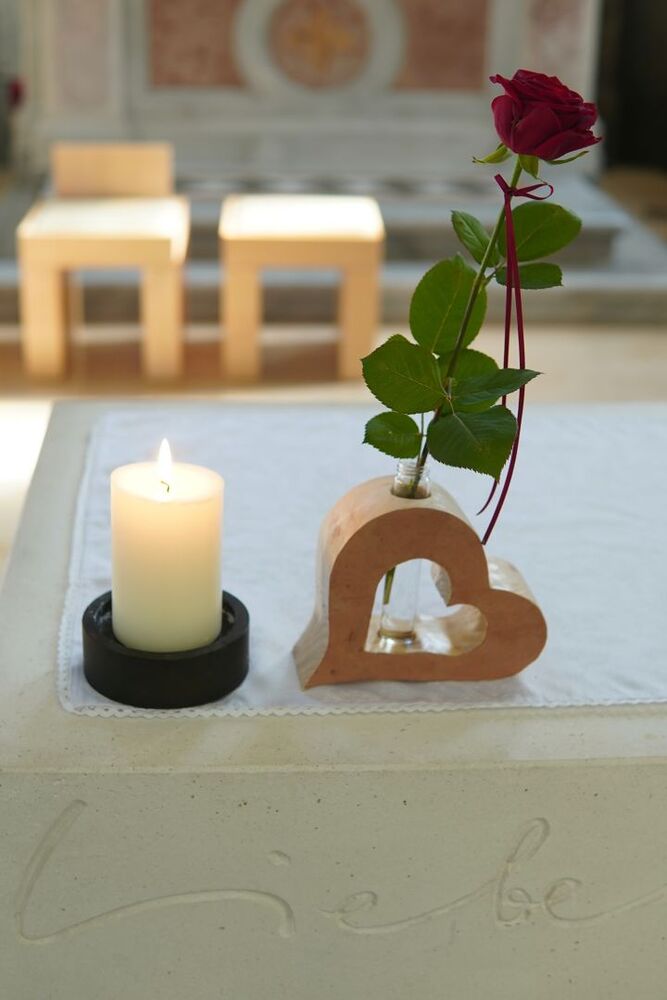 Die Rose als Sinnbild begleitete uns auch durch die ganze Feier. Mit ihrer Schönheit, ihrer Blütenpracht, ihrem Duft, den grünen Blättern, aber auch mit ihren Dornen vereint sie Gegensätze in sich. Sie ist Zeichen der Liebe und kann für unser Zusammenleben stehen.