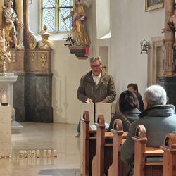 Dazu kamen als Besonderheit dieses Sonntags Glück- und Segenswünsche für unseren Diakon Michi Zepf, der genau an diesem Tag seinen 60. Geburtstag feierte. Ernst Pock, Vorsitzender des PGR, gratulierte herzlich und überreichte ein für Michi „zugeschnitztes“ Geschenk. Dass er den Segen Gottes bis in die Zehenspitzen spüren möge, wünschten ihm schließlich die Sängerinnen und Sänger des Kirchenchores in ihrem Segenslied!