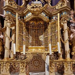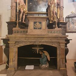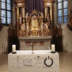 Kennst du diese Symbole (Siehe Bild mit Altar) und weißt du, was sie mit dem Gebet: „Herr, ich bin nicht würdig, dass du eingehst unter mein Dach,…“ zu tun haben? Nein?