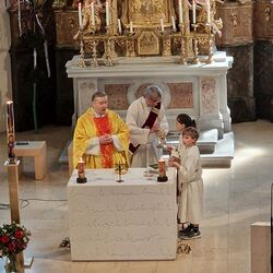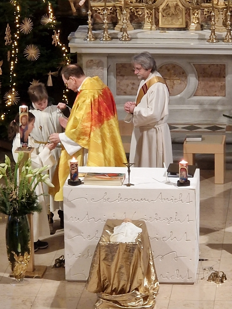 Am Christtag zelebrierte Vikar Gerhard Hatzmann die heilige Messe und wurde von Diakon Michi Zepf sowie einigen Minis unterstützt.