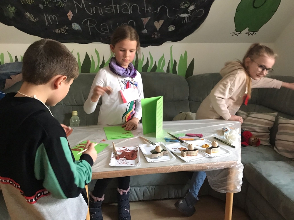Am 3. März trafen sich von 15 bis 17 Uhr die Erstkommunionkinder zum zweiten Mal im Pfarrheim, um sich auf ihr Fest vorzubereiten. Es waren wieder so viele helfende Hände von Müttern und Vätern vor Ort, dass alles wunderbar funktionierte.