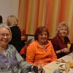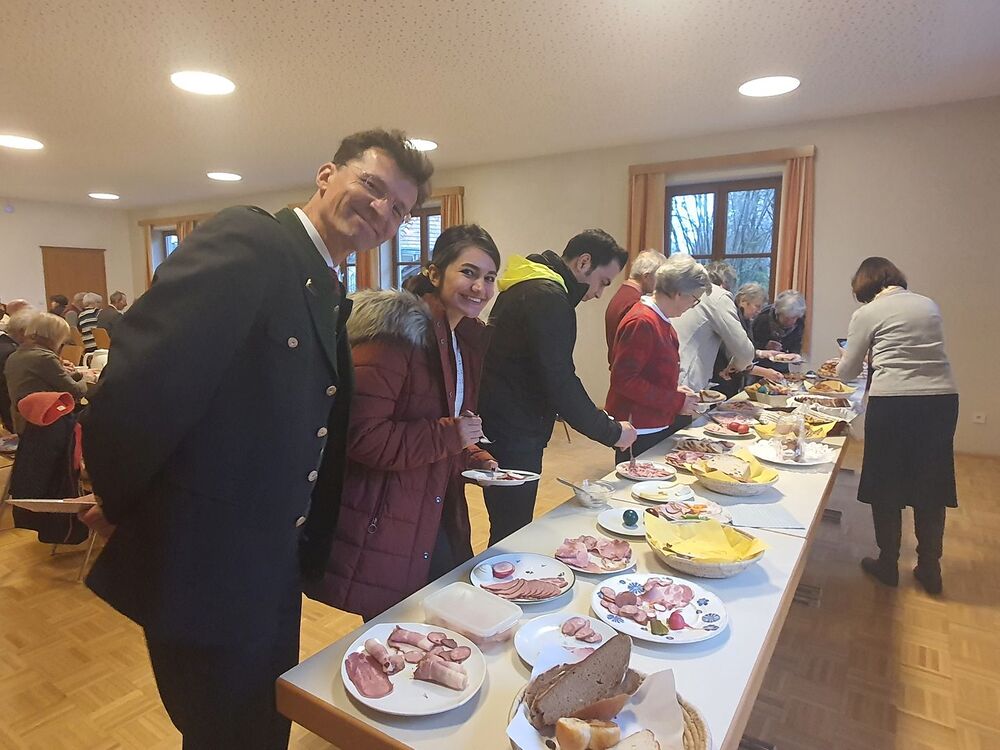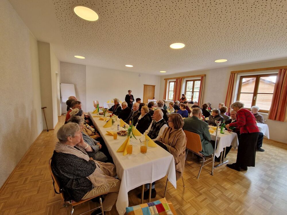 Nach der geistig-seelischen Stärkung in der Kirche genossen die75+ Gäste die leibliche Stärkung im Pfarrheim, für die der Sozialkreis, geleitet von Elisabeth Schöpf, wieder bestens sorgte. Ein kleiner Witz von Vikar Hatzmann und die musikalische Untermalung von Jakob Mayer am Keyboard sorgten sogleich für Auflockerung und gute Stimmung.
