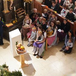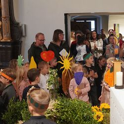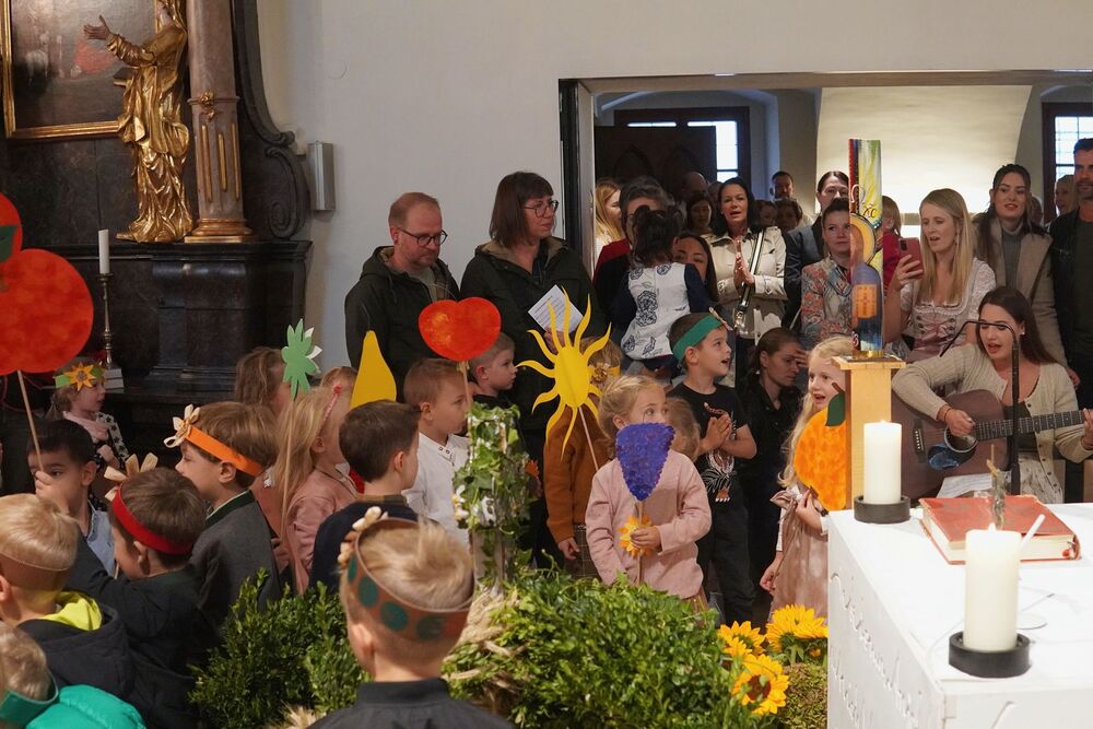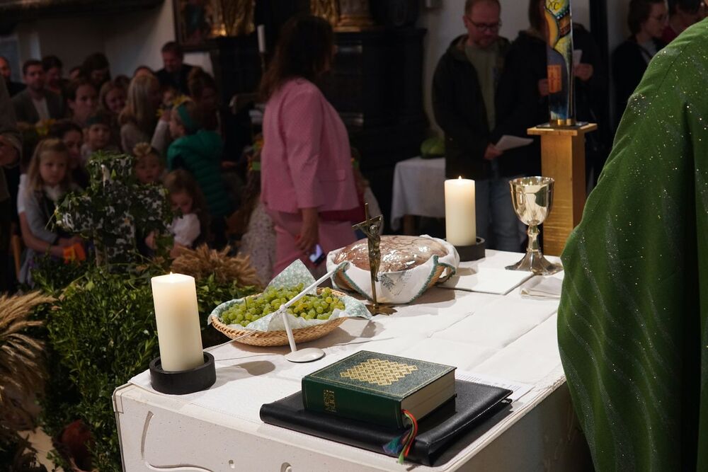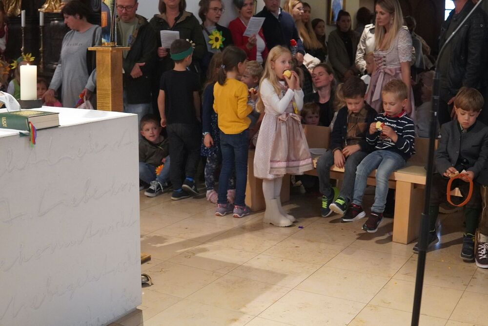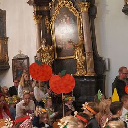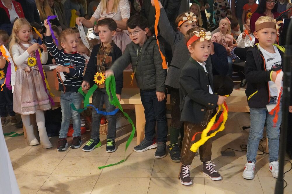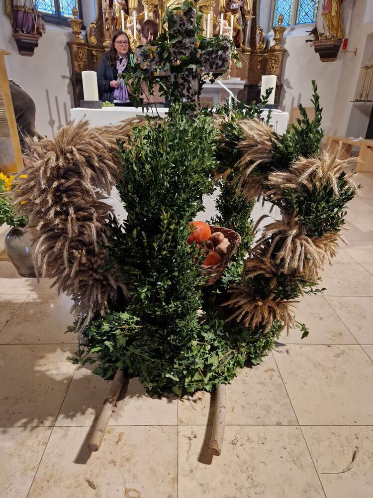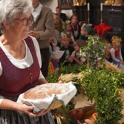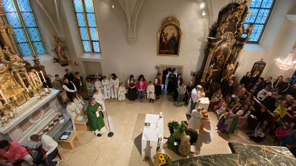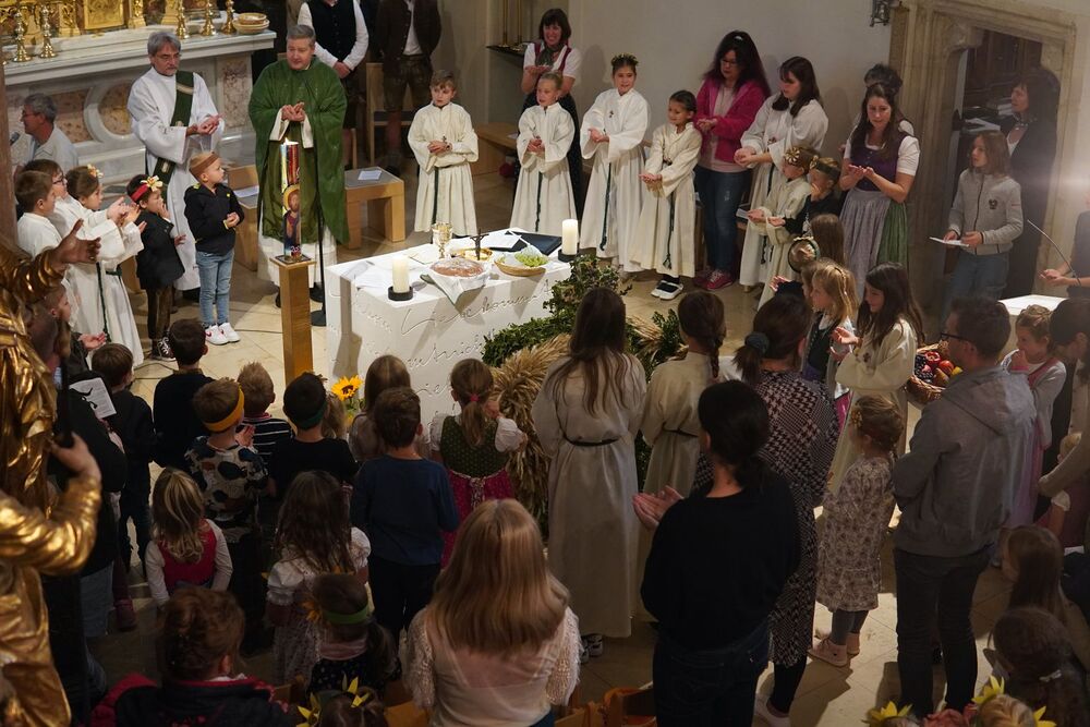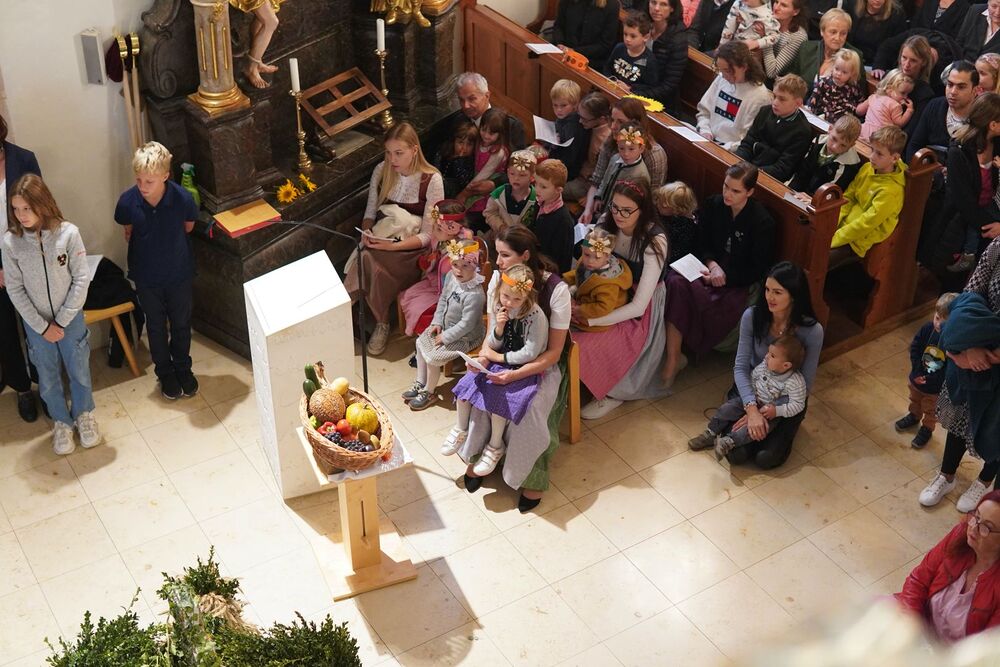 Ein herzliches Danke allen, die so schön mitgestaltet und mitgefeiert haben: Dies waren die Kindergartenkinder (Erntedank Tanz), die Minis und MS-Schüler*innen (Zeichenhandlung mit Erntegaben), die Landjugend (Erntekrone), die Musikgruppe (begeisternde Musik) und viele mehr.