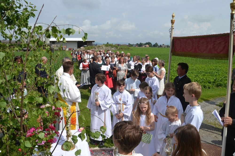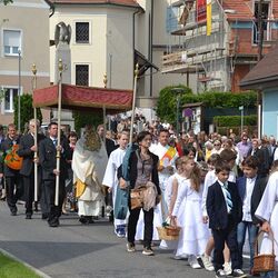 In schöner Gemeinschaft feierten die Pfarren Premstätten und Wundschuh das Fronleichnamsfest heuer in Wundschuh. Nach dem festlichen Gottesdienst mit Pfarrer Claudiu Budau und Diakon Wolfgang Garber in der Pfarrkirche Wundschuh bewegte sich die Prozession, musikalisch begleitet von der Blasmusik, durch den Ort zu den Altären, wo Kinder und Erwachsene Gott singend und betend Lob, Preis, Dank und Bitten darbrachten. Mit der letzten Station in der Kirche fand die Fronleichnamsprozession ihren feierlichen Abschluss.